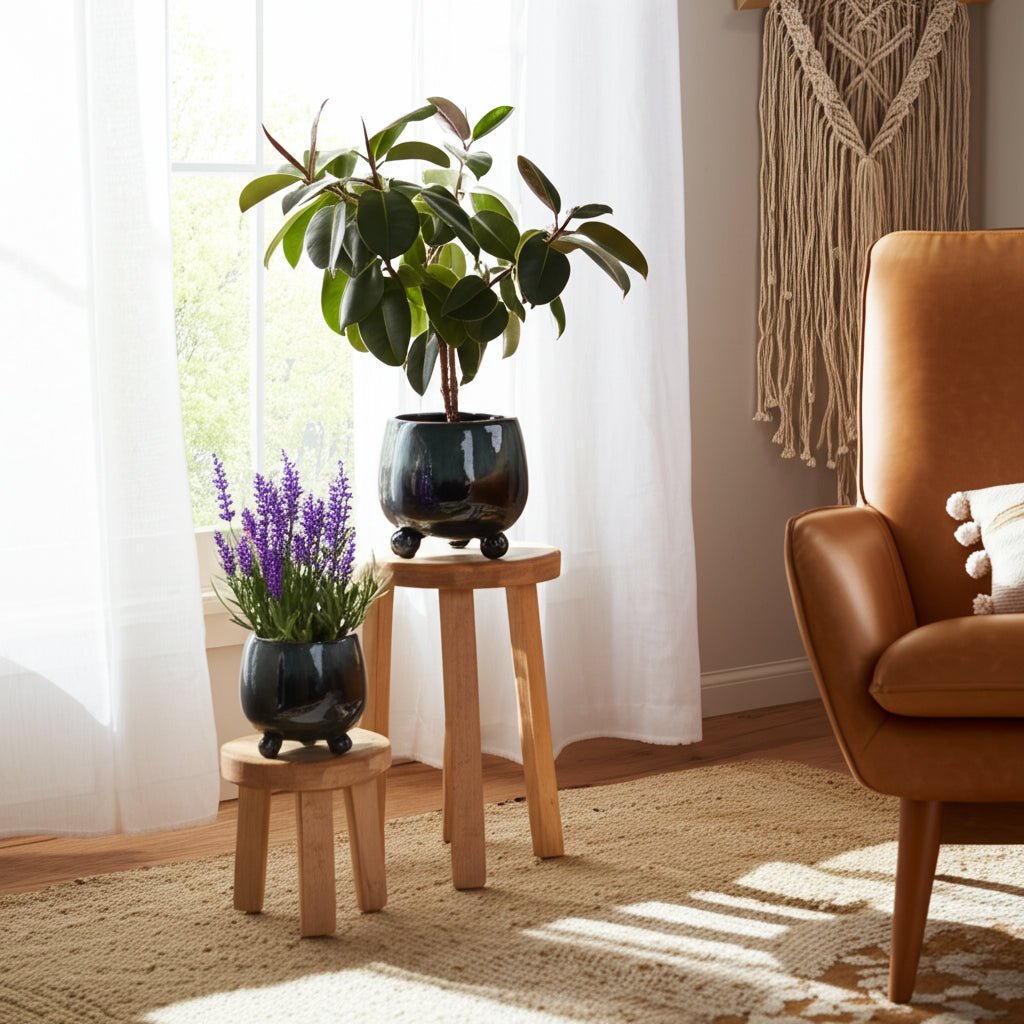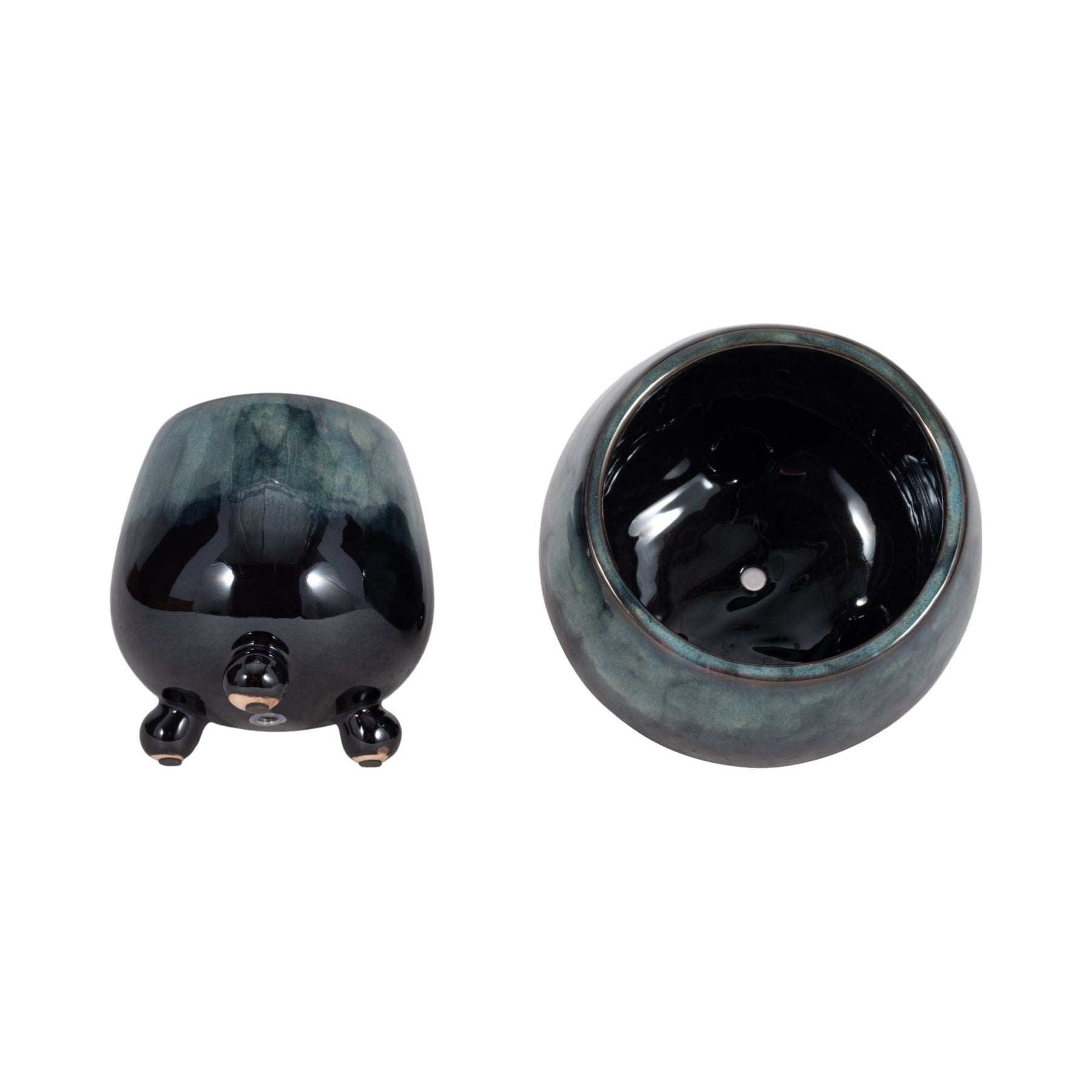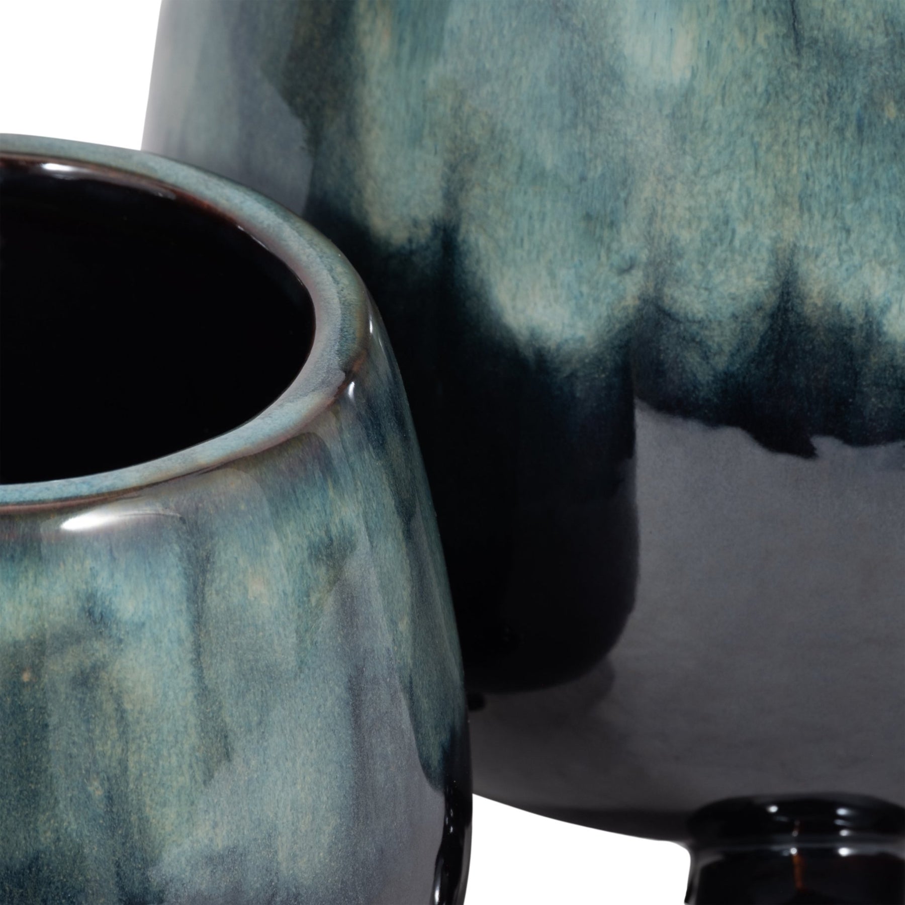 S/2 6/8" Knobby Feet Reactive Finish Planters, Blu