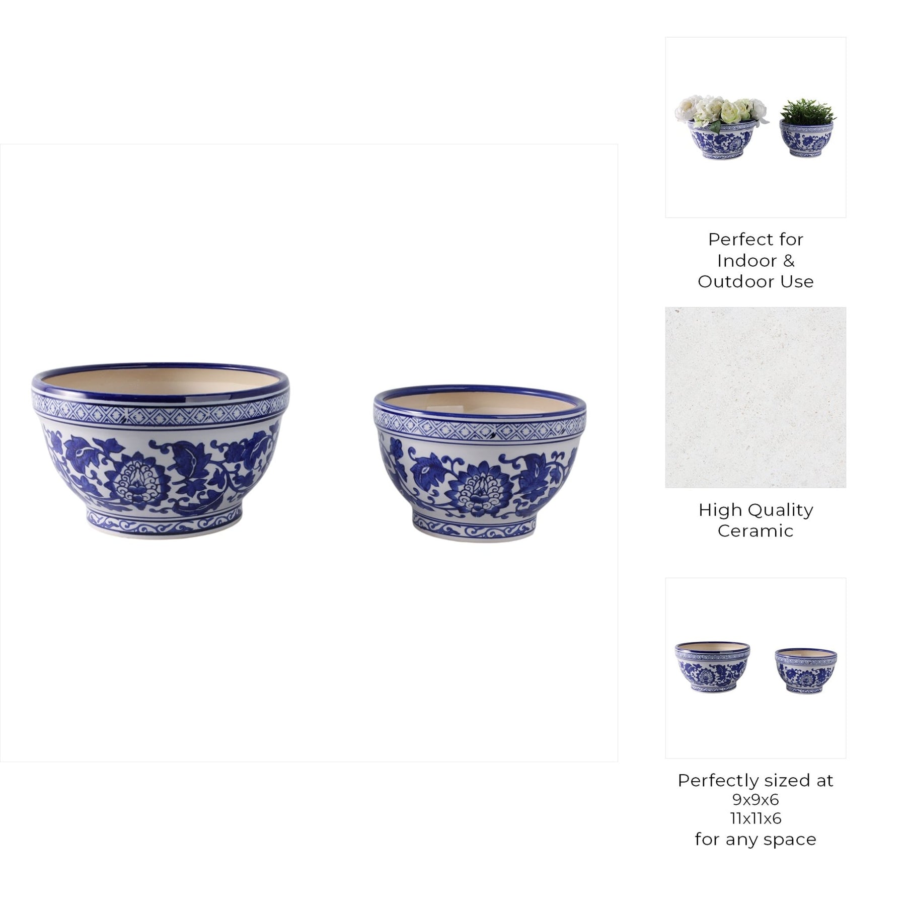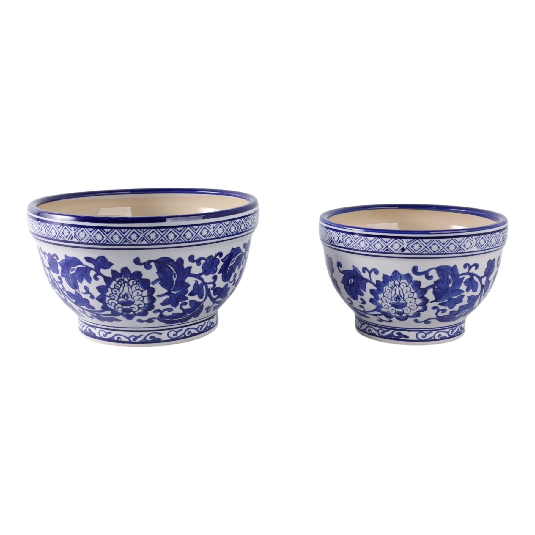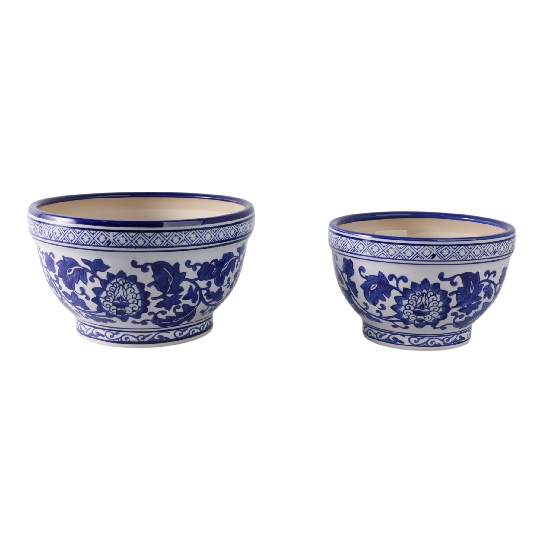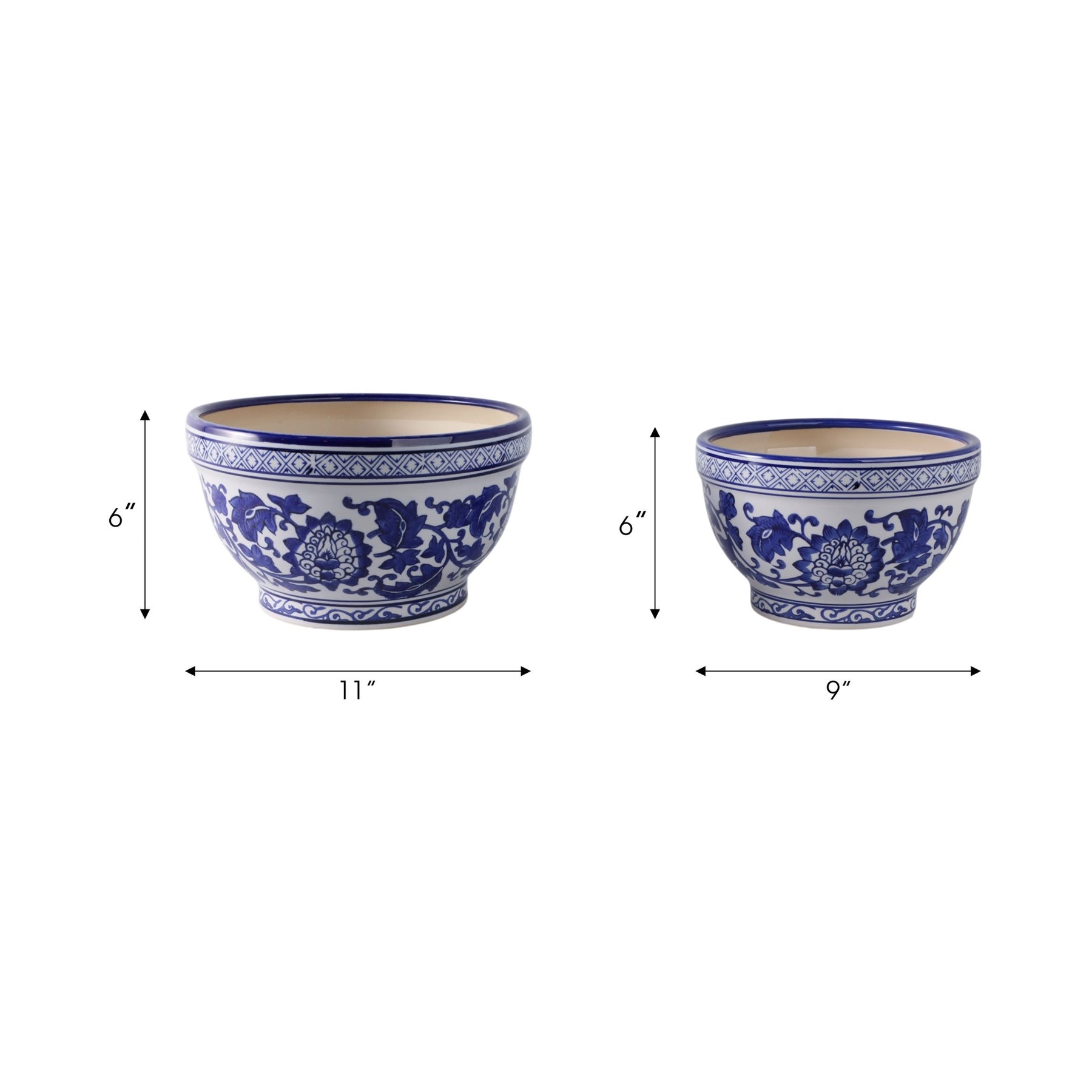 S/2 9/11" Bowl Chinoiserie Planters, Blue/wht
