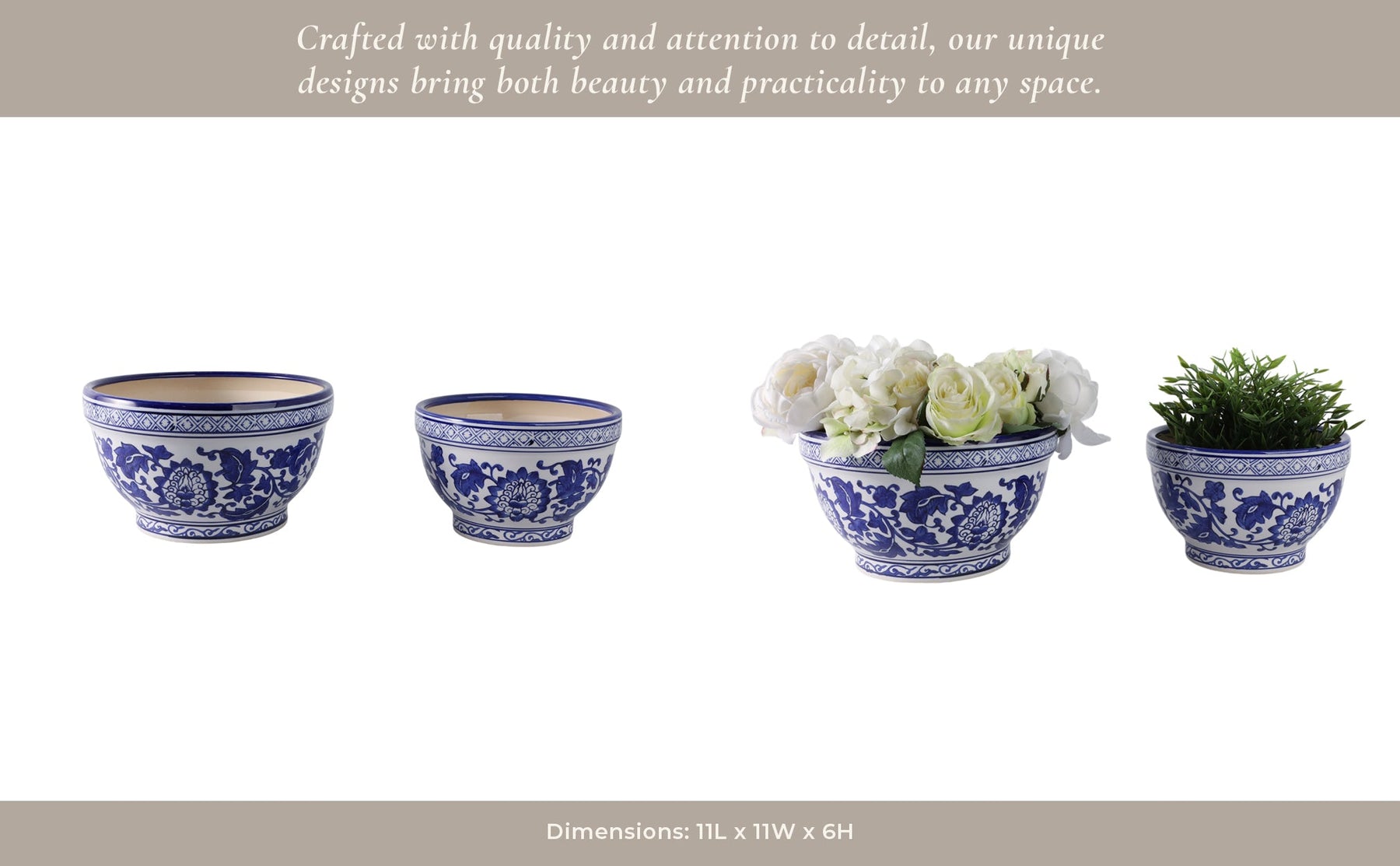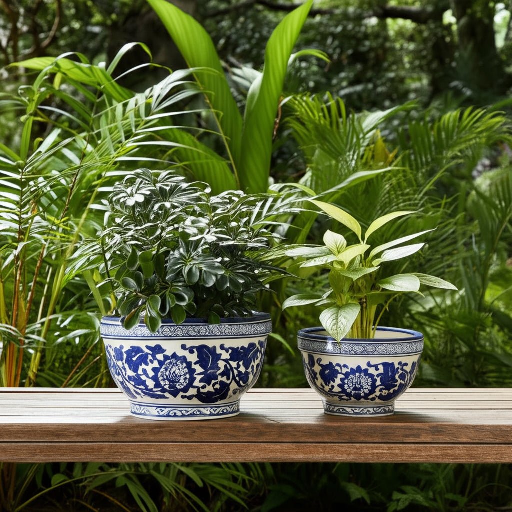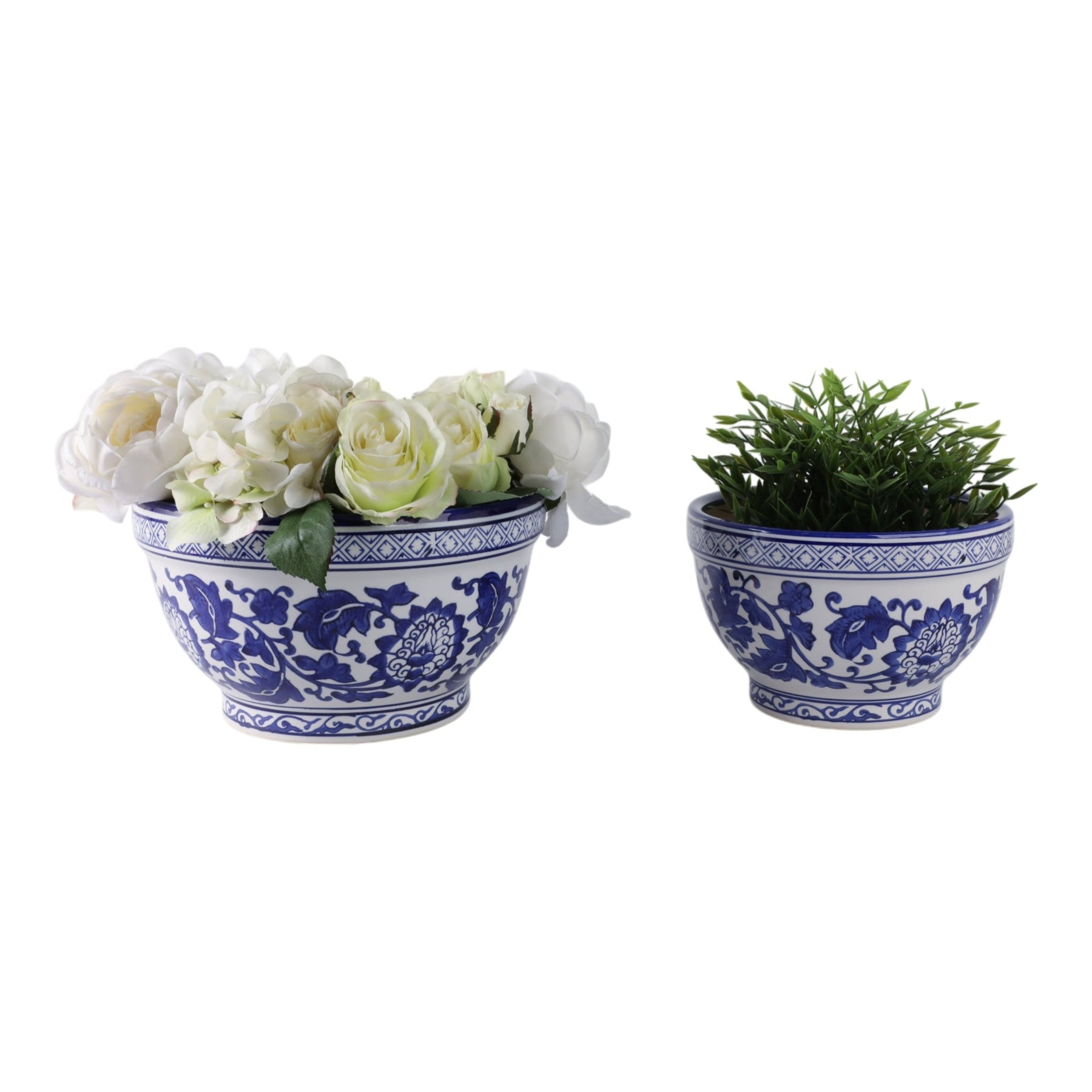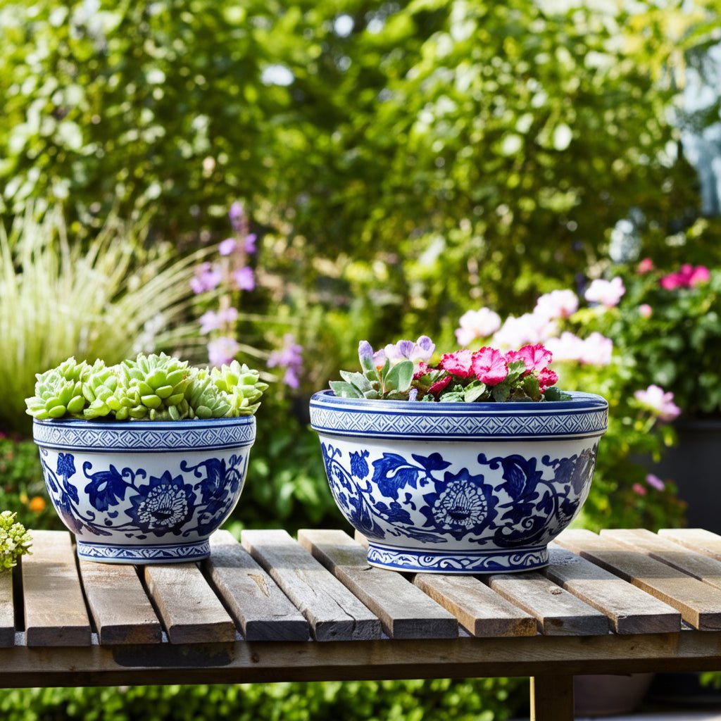 S/2 9/11" Bowl Chinoiserie Planters, Blue/wht