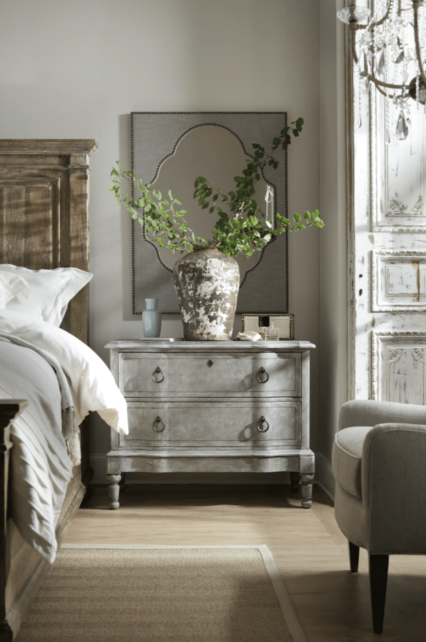 Inspired by the Belgian design aesthetic, the lyrical blend of blue toned neutrals in the Verbena Bachelor's Chest features the Stonewash finish, a play of blue, white and gray on a finely textured surface. With two drawers, there's a drop-in felt liner in the top drawer, cedar-lined bottom drawer and a touch dimmer switch.