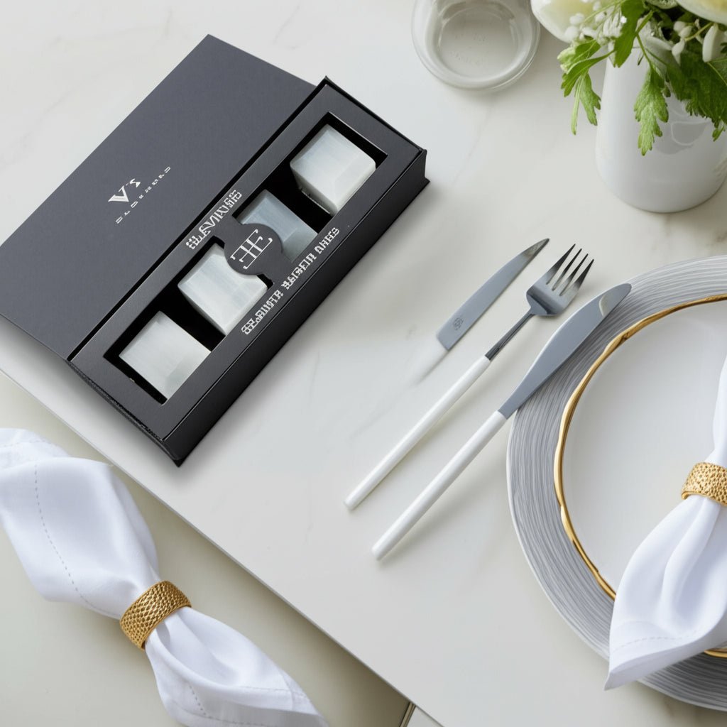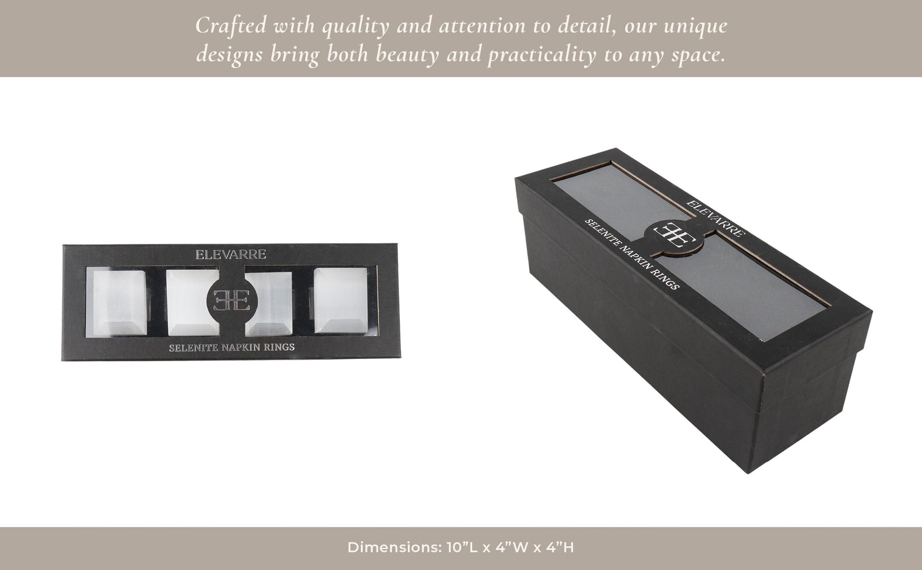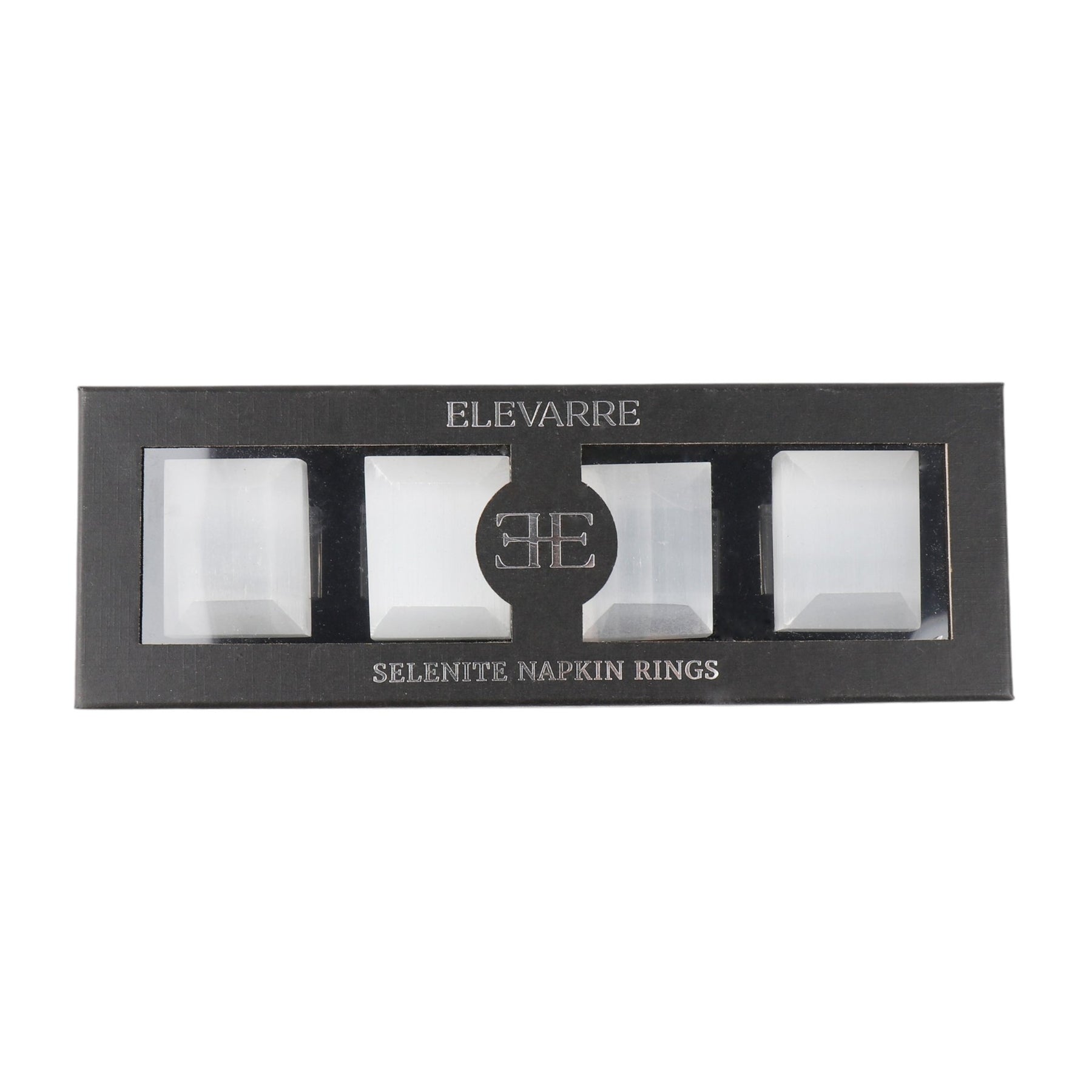 S/4 10" SENISE SELENITE/CRYSTAL NAPKIN RINGS, WHT - Al Rugaib Furniture