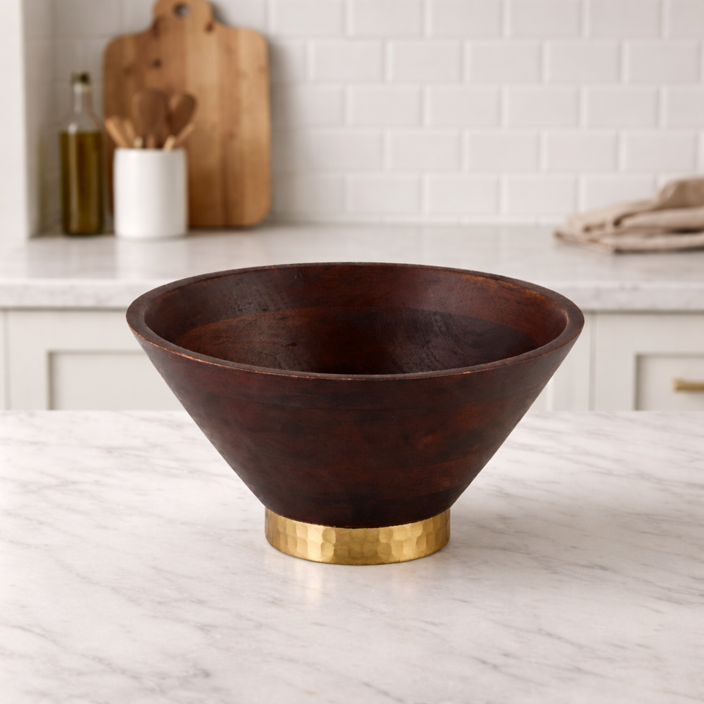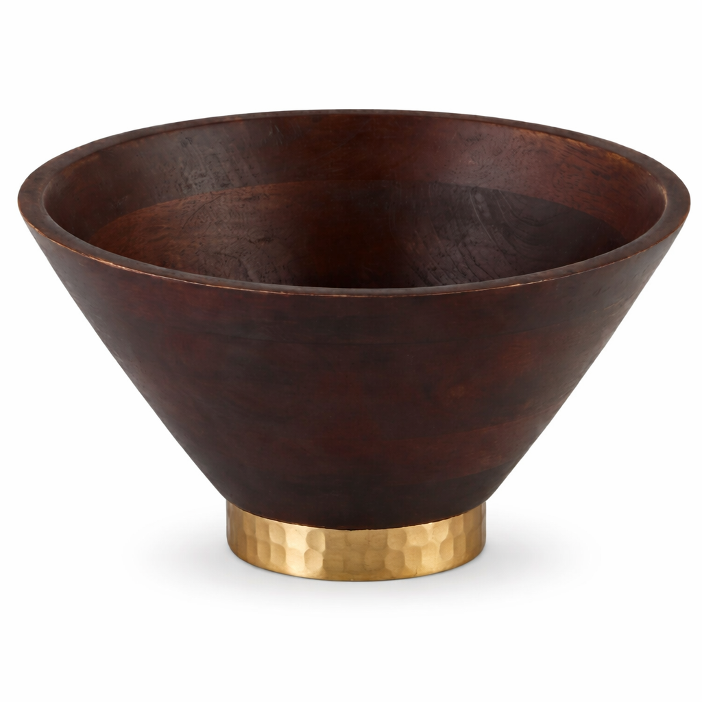 Wooden Bowl with Metal Base