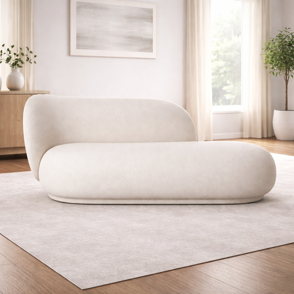 Royal – Cascade Comfort Boucle Sofa with Swedish Wood – White – 180×80×80 cm