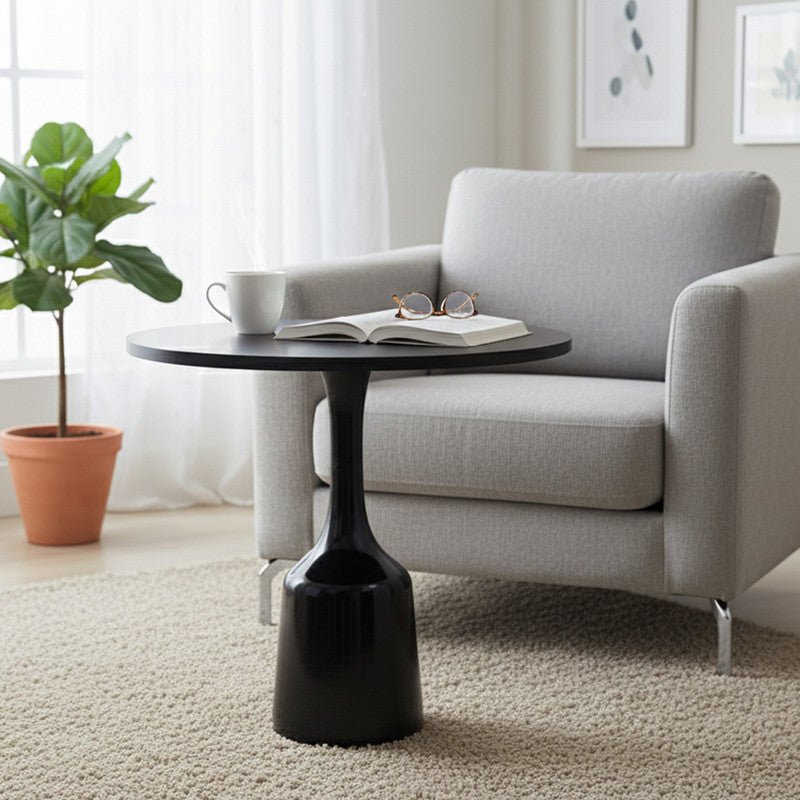 Royal | Modern Black Wooden Side Table – Round 60×60 cm Design