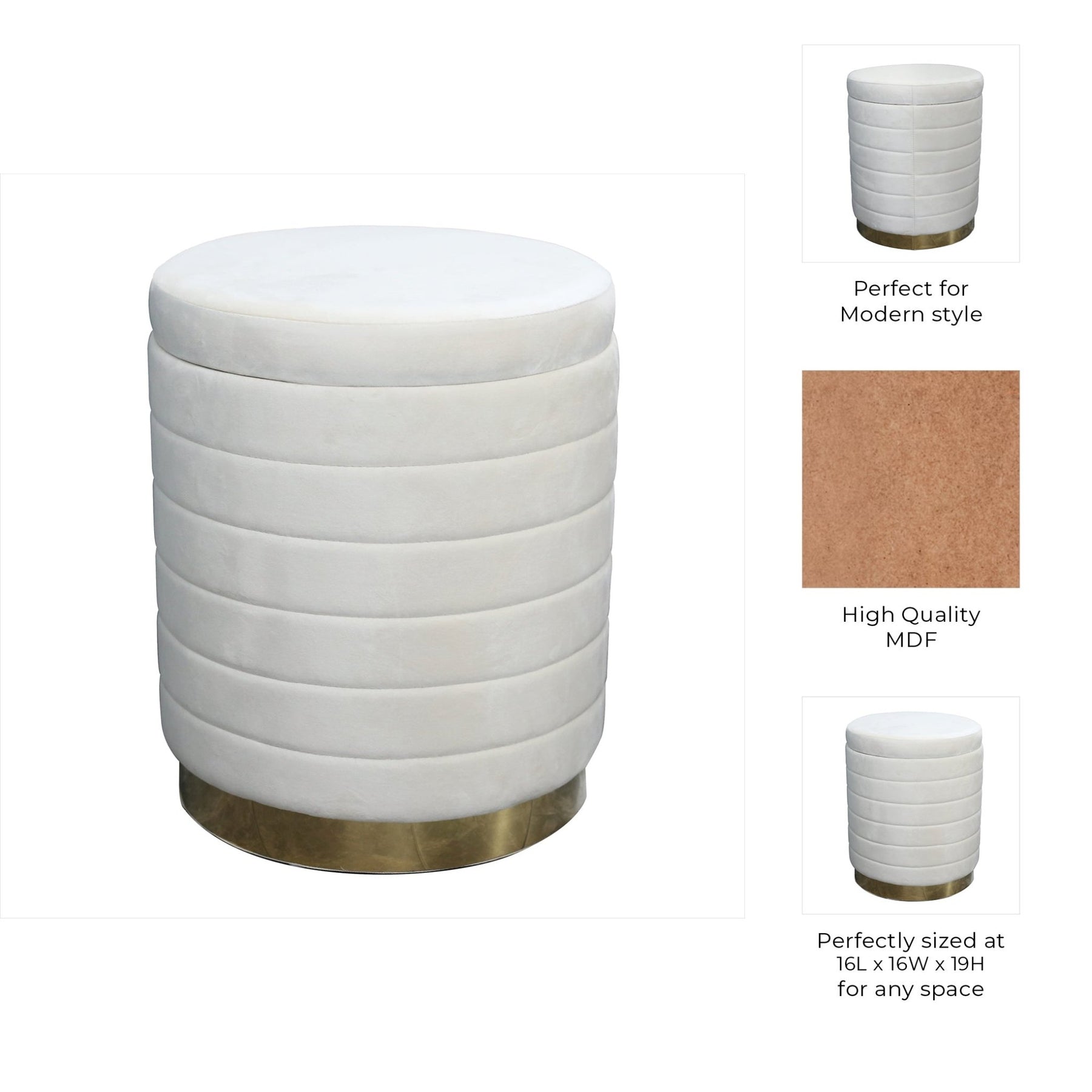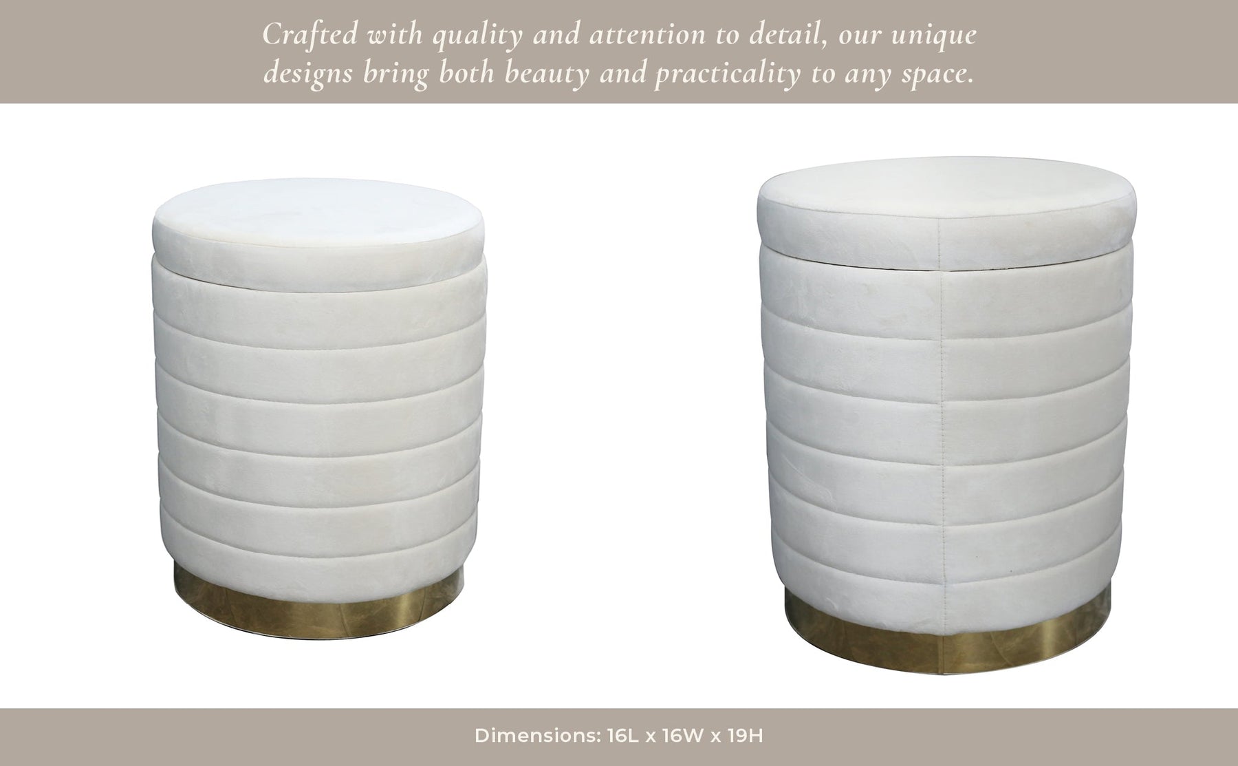 19" Stirling Cream Velvet Storage Stool - Al Rugaib Furniture