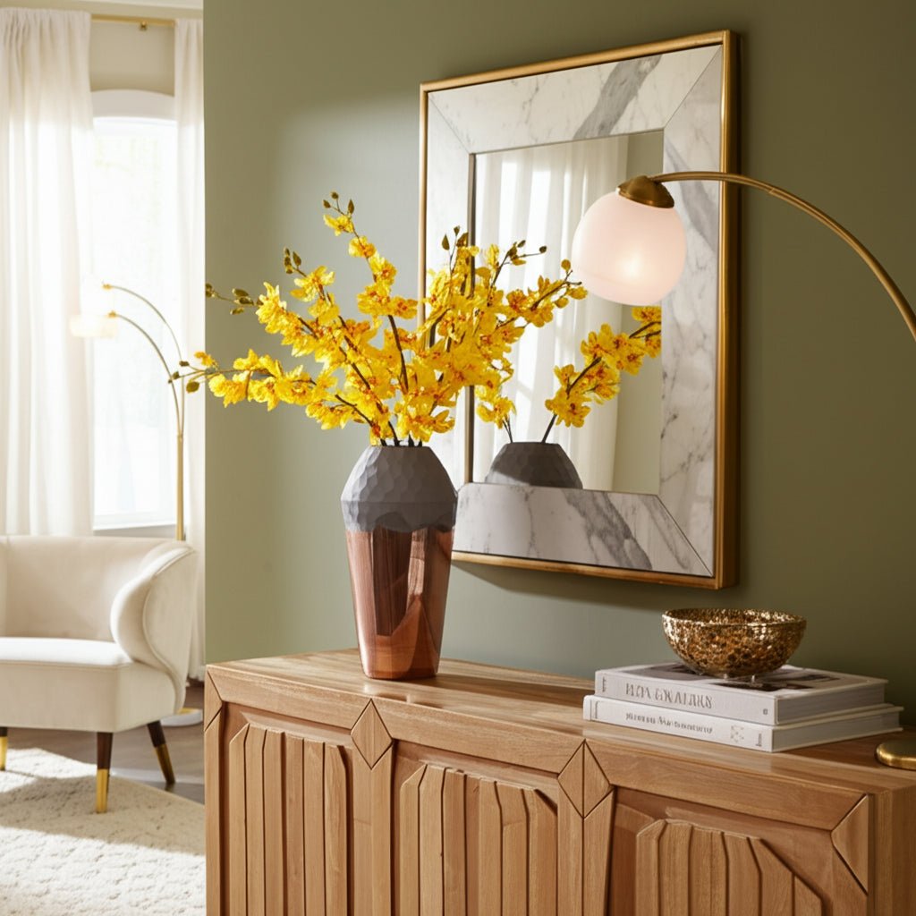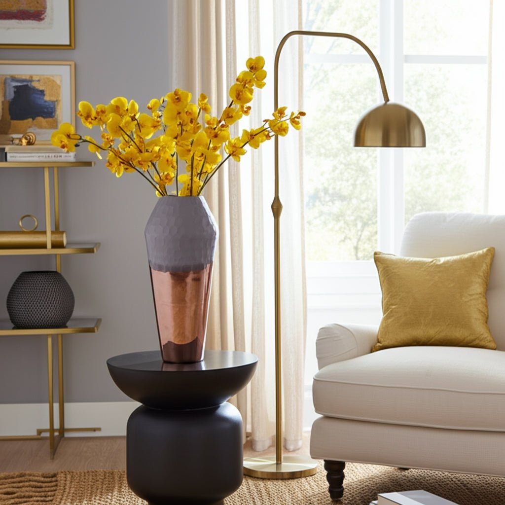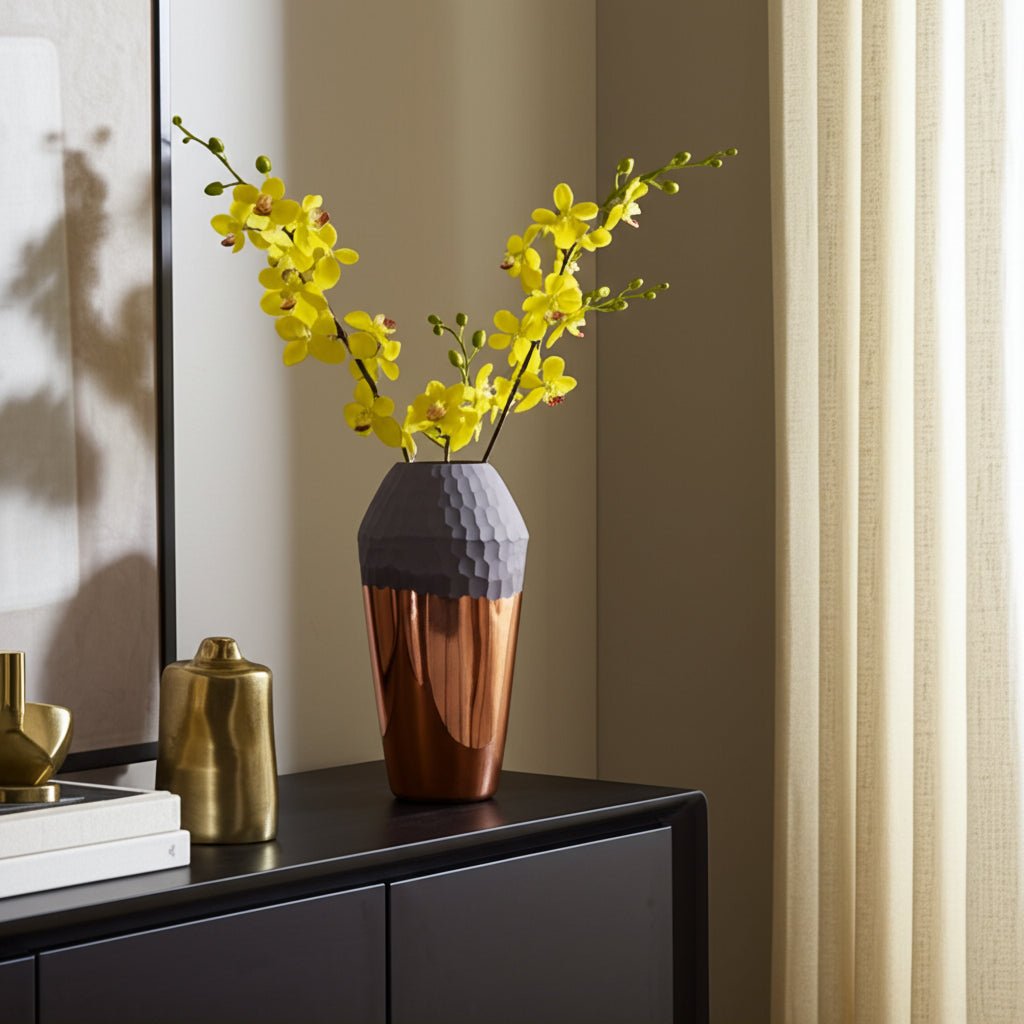 GLASS, 2 - TONE HAND - CUT VASE, METALLIC - Al Rugaib Furniture