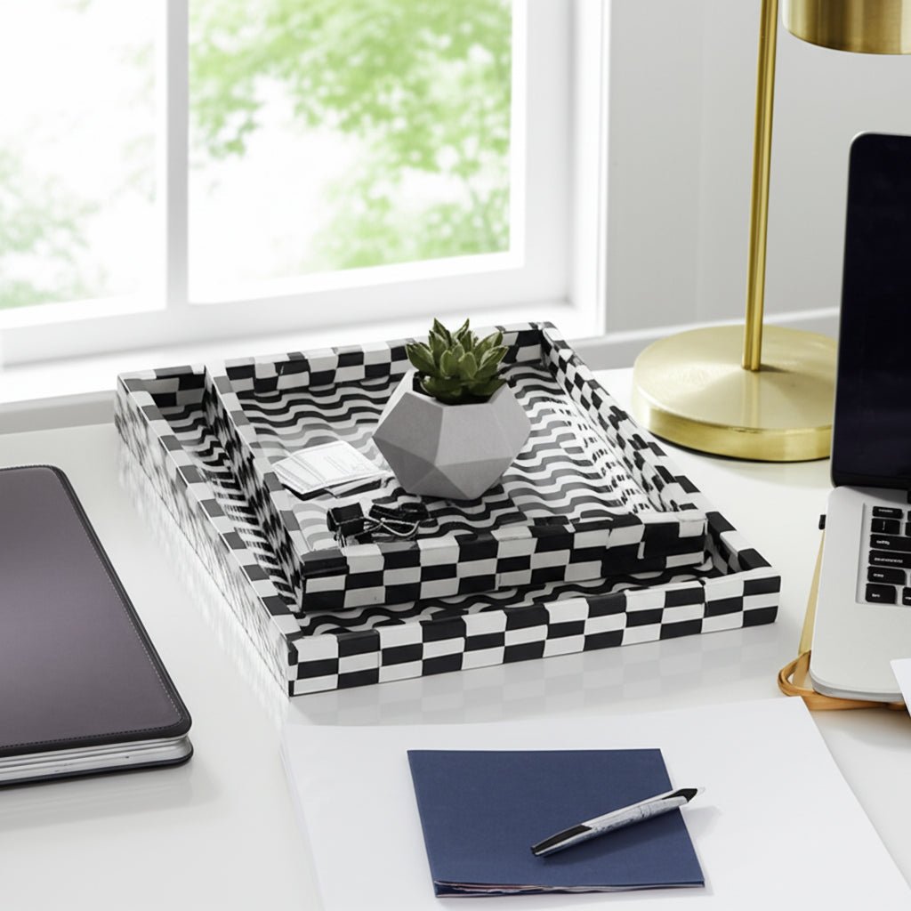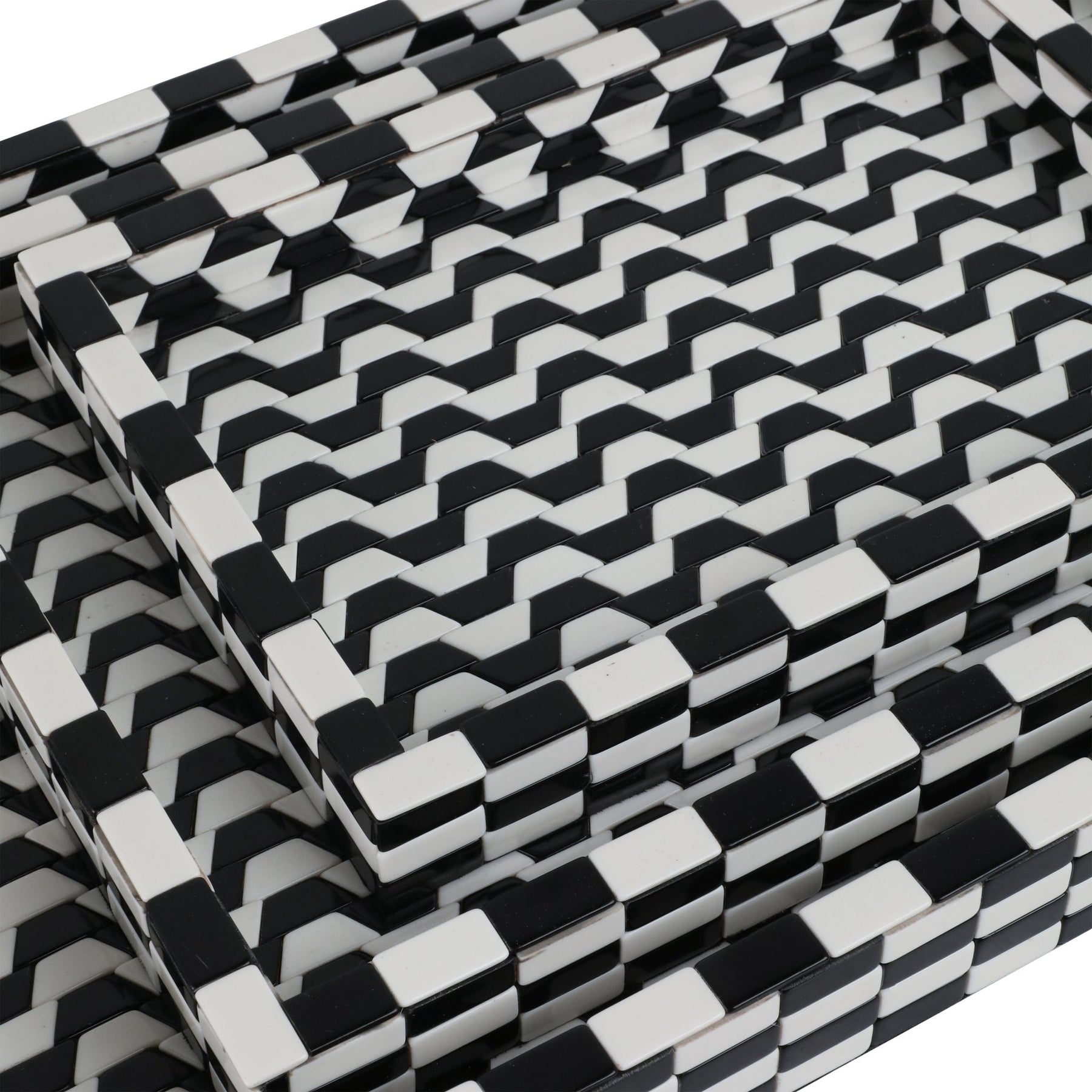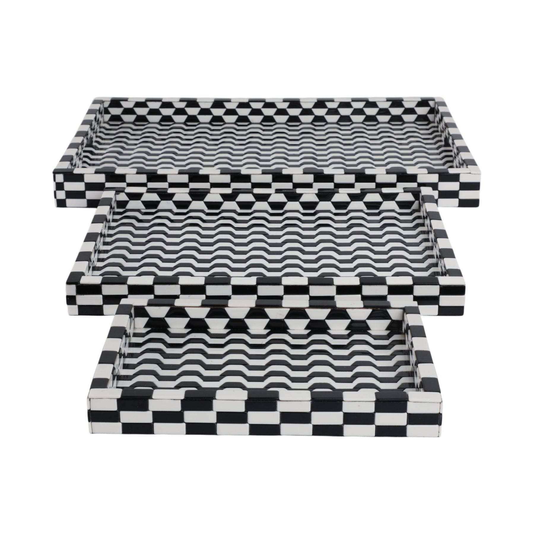 S/3 13/18/24" Geo 3d Resin Trays, Black/white - Al Rugaib Furniture