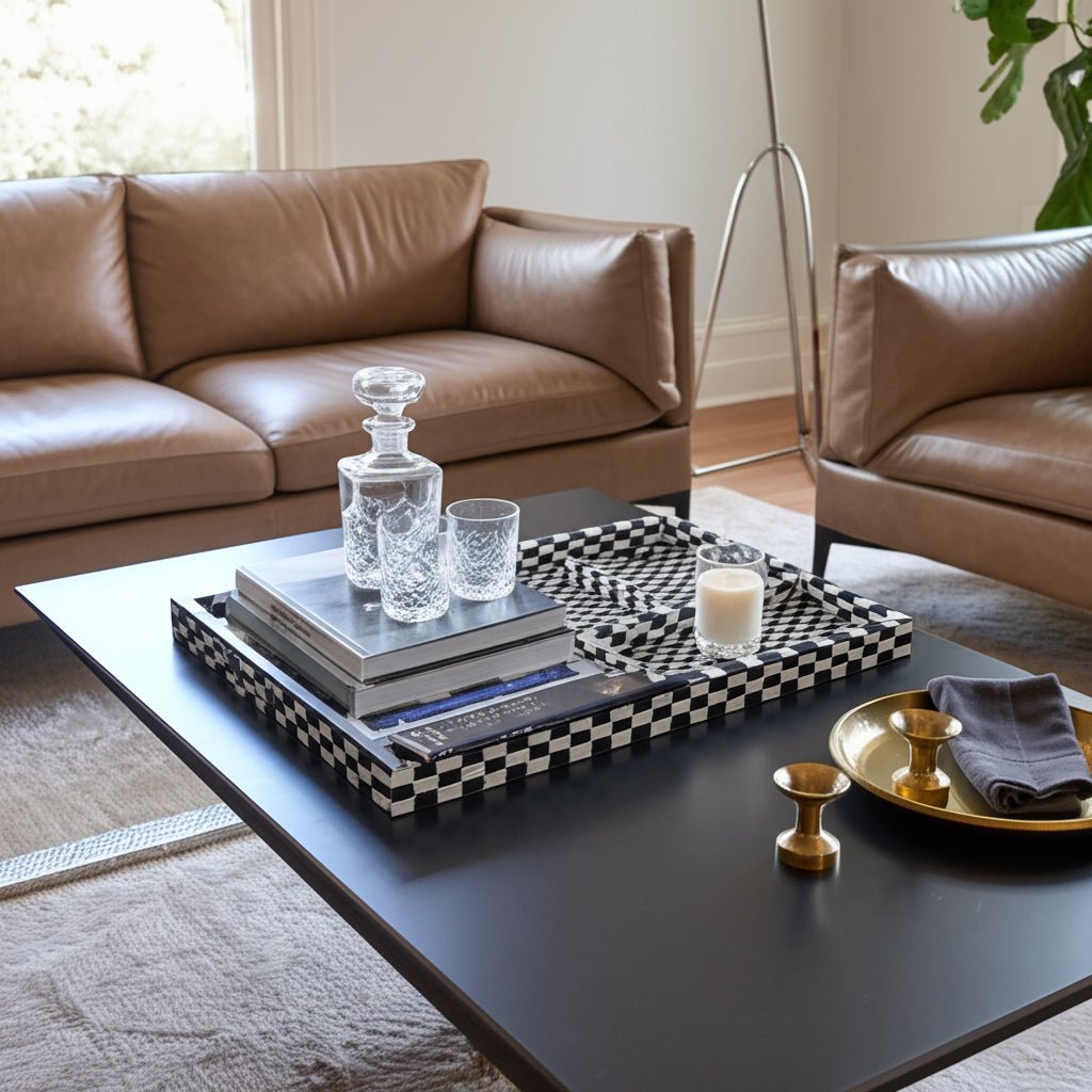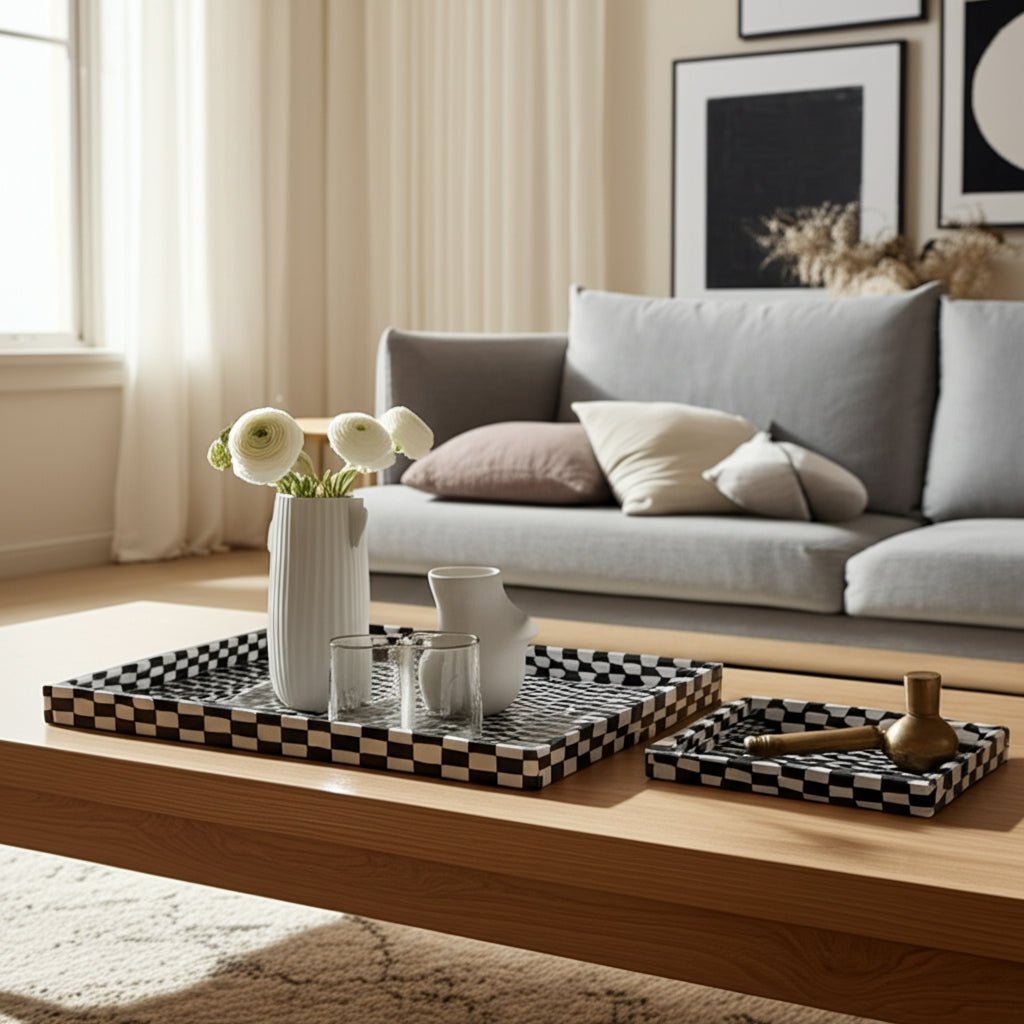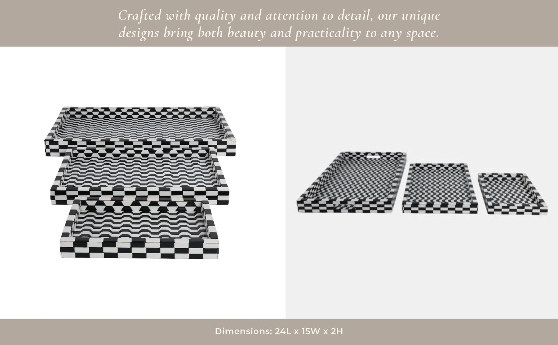 S/3 13/18/24" Geo 3d Resin Trays, Black/white - Al Rugaib Furniture