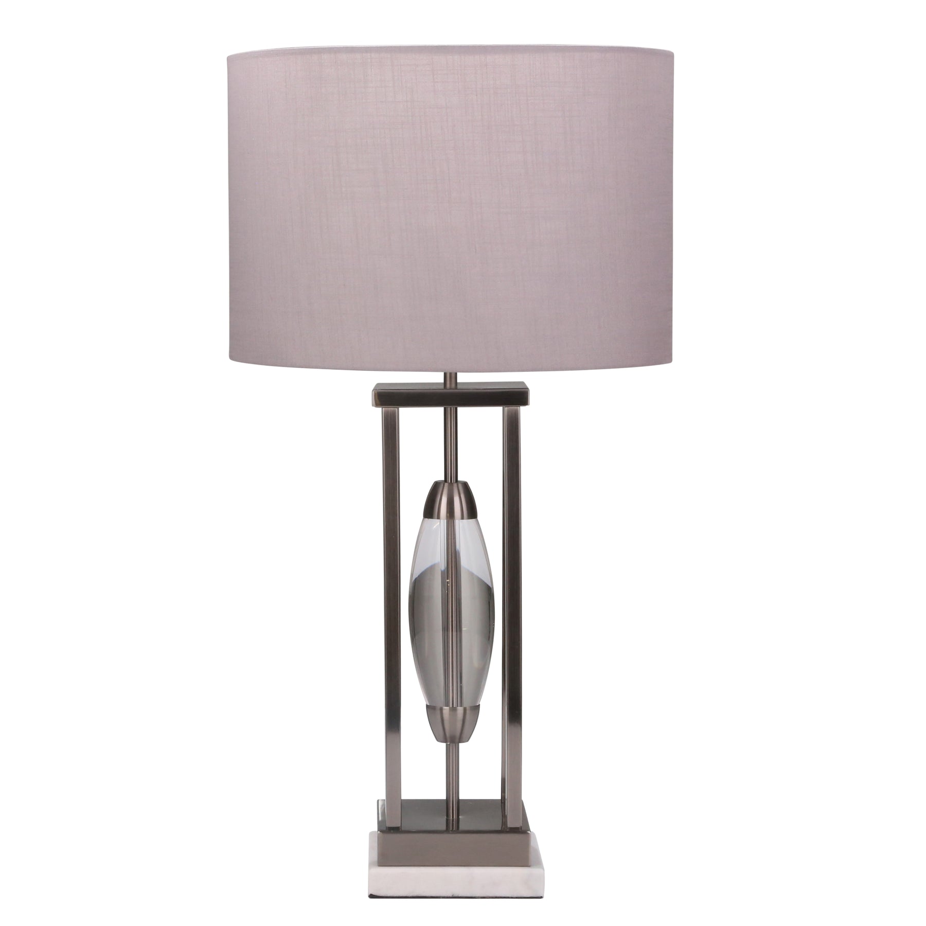 METAL TABLE LAMP W/ A CLEAR OVAL CENTER 28.5", GRA