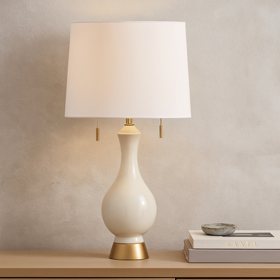 CERAMIC 34" HOURGLASS TABLE LAMP, WHITE