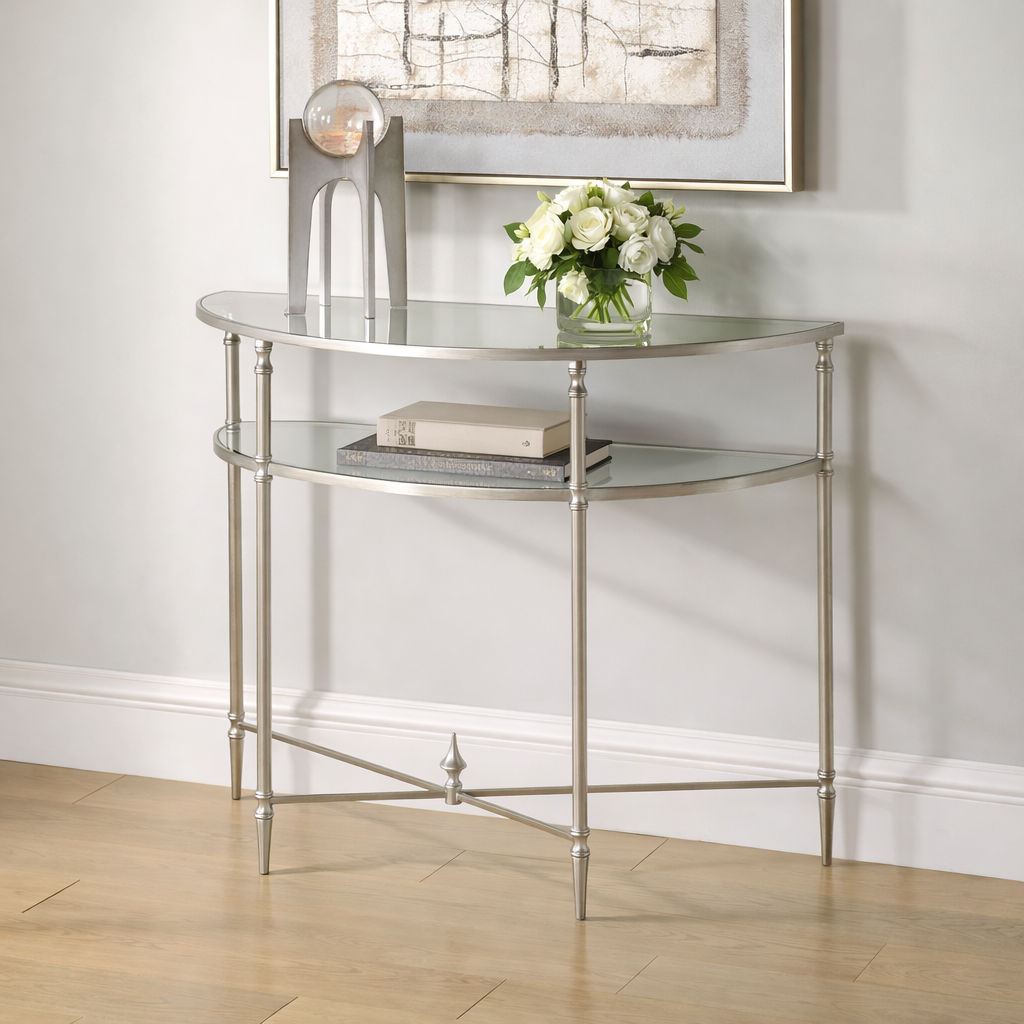 Henzler 91 W x 76 H x 45 D Silver Demilune Console Table with Mirror Top