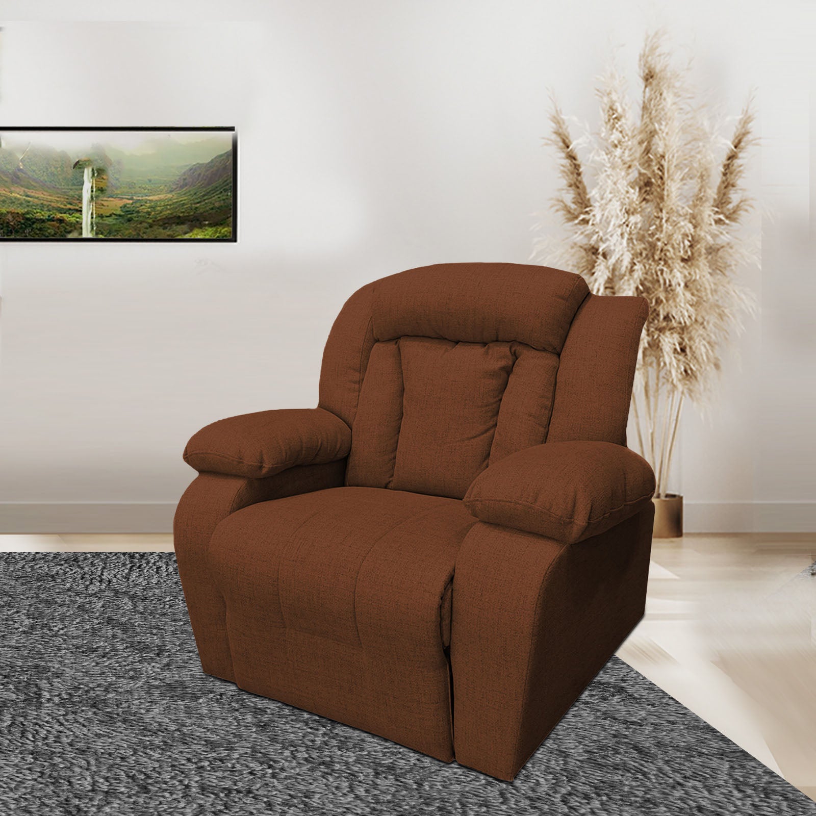 Linen Upholstered Rocking & Rotating Recliner Chair With Bed Mode From In House - Brown - NZ50