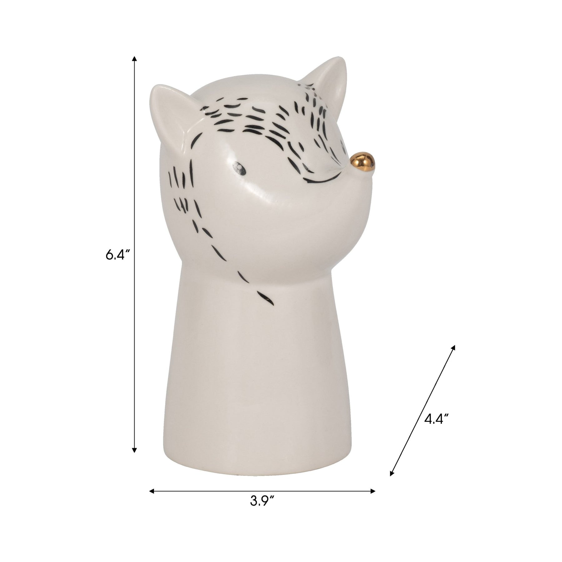 6" Fox Head With Gold Nose, White/black - Al Rugaib Furniture