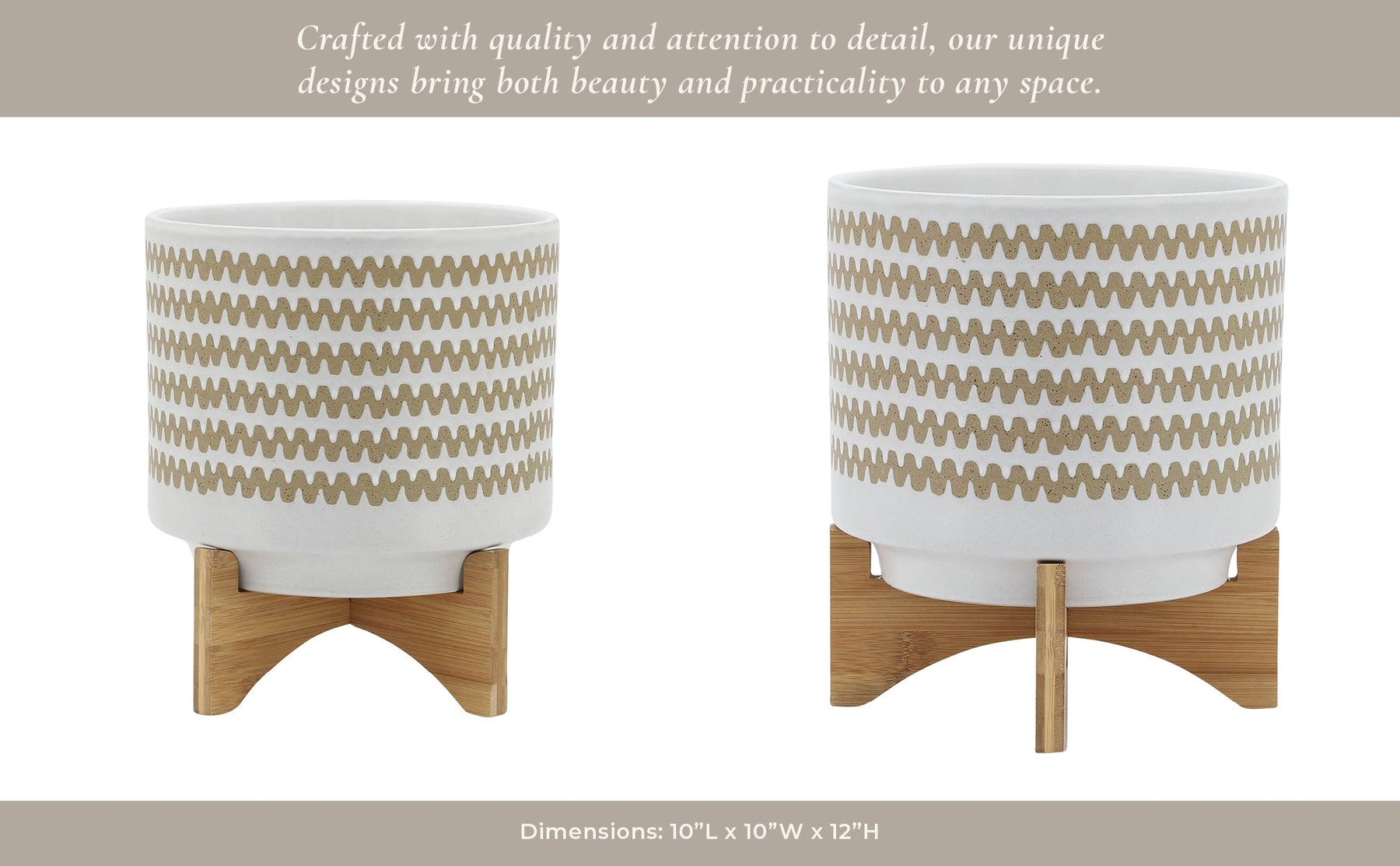 Place your favorite plants in this lovely set of planters. With a gorgeous zigzag pattern on the outside, these planters will be a great way to display your favorite plants. A neutral finish with a matte finish that will allow them to beautifully fit into your inside or outside decor.Sagebrook Home has been formed from a love of design, a commitment to service and a dedication to quality. They create and import fashion forward items in the most popular design styles. Backed with years of experience in the textile field, They are now providing a complete Home decor story. the combination of wall decor, furniture, lighting and Home accessories are all coordinated with textiles to provide a complete Home look. Sagebrook Home is committed to providing the best Home decor and accent pieces at value prices.