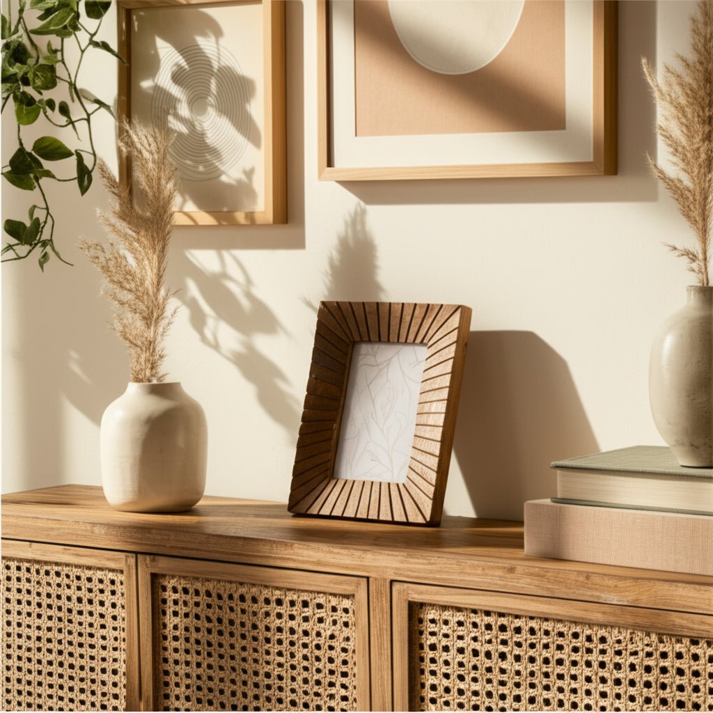 5x7 Wood Starburst Photo Frame, Natural - Al Rugaib Furniture