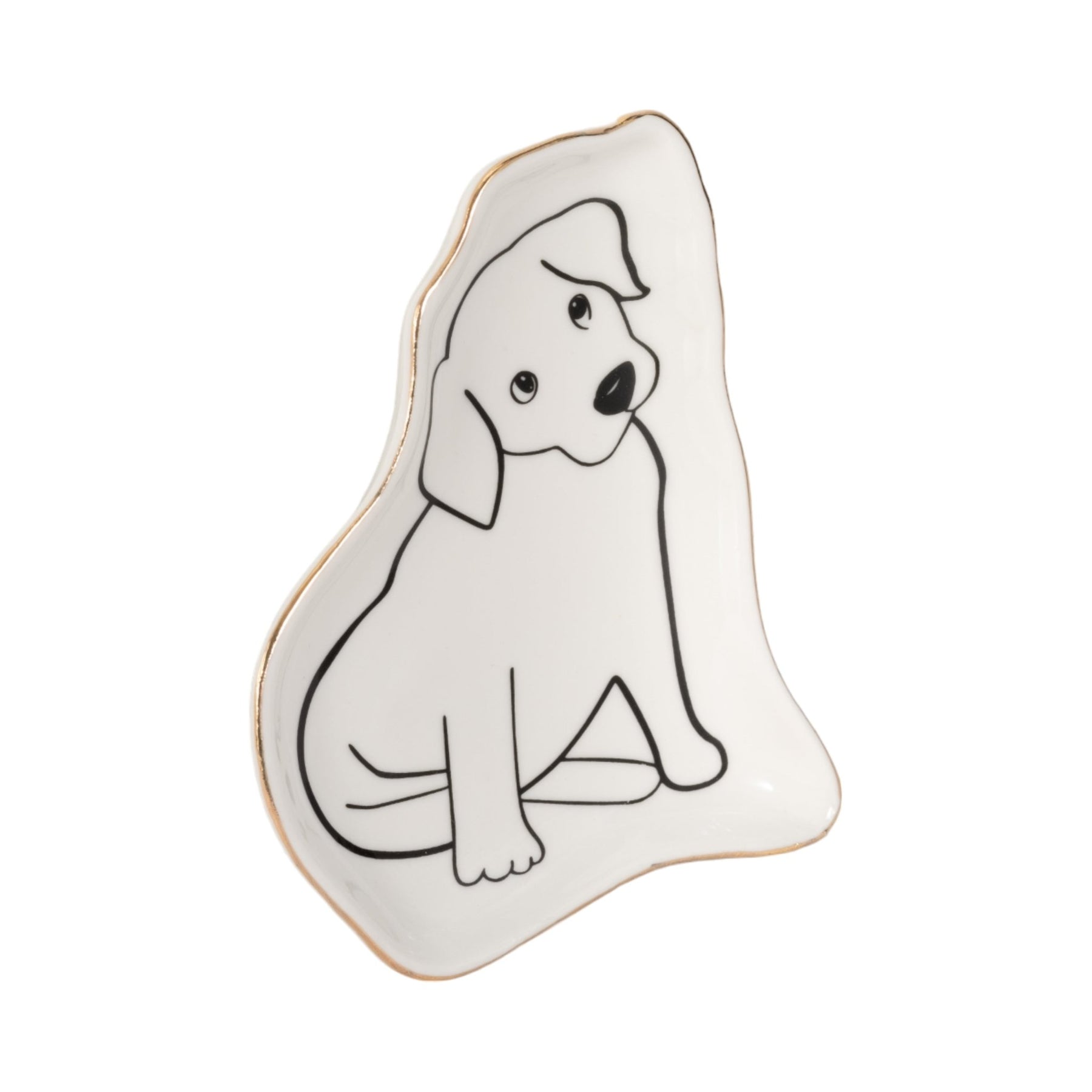 6" Lab Puppy Trinket Tray W/ Gold Detail, White/blue