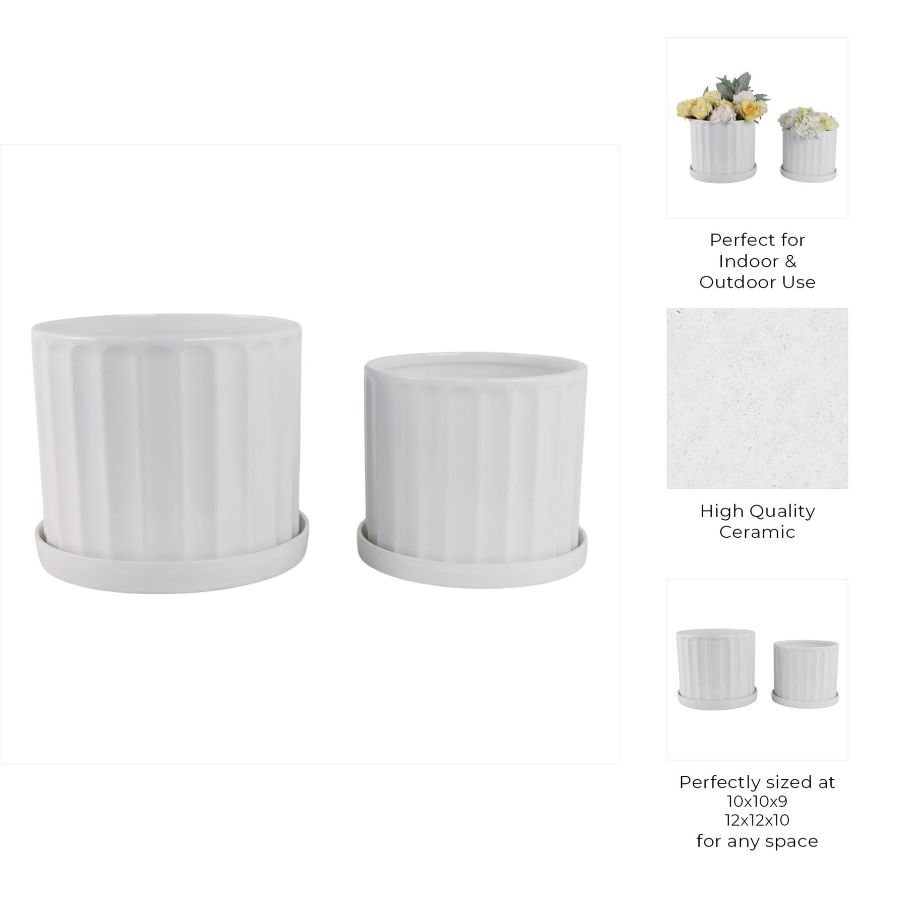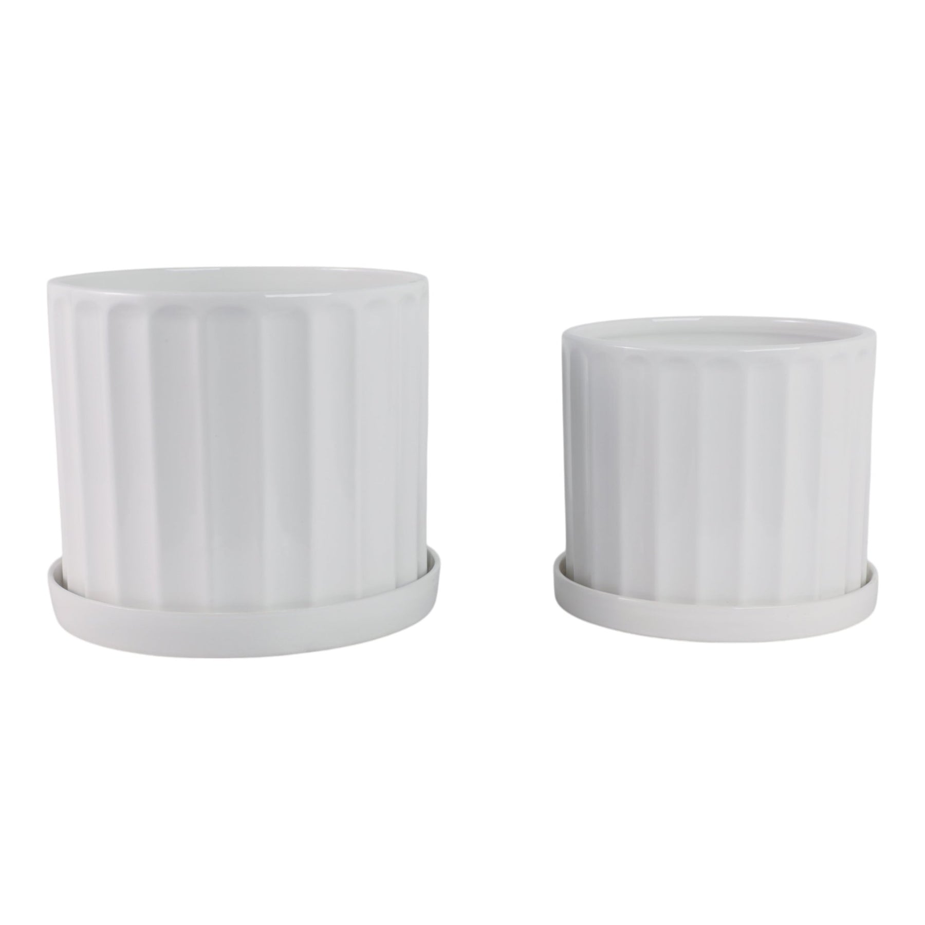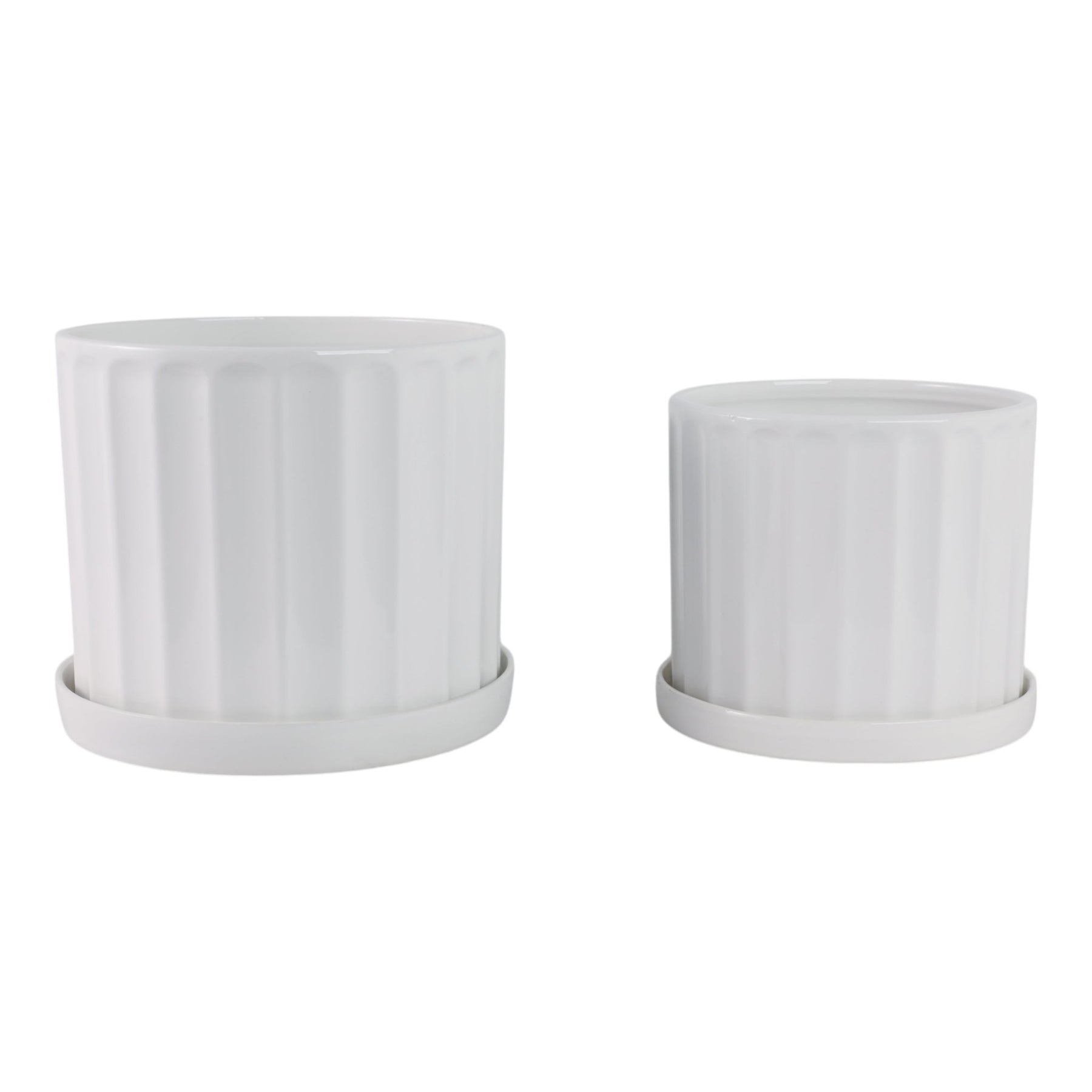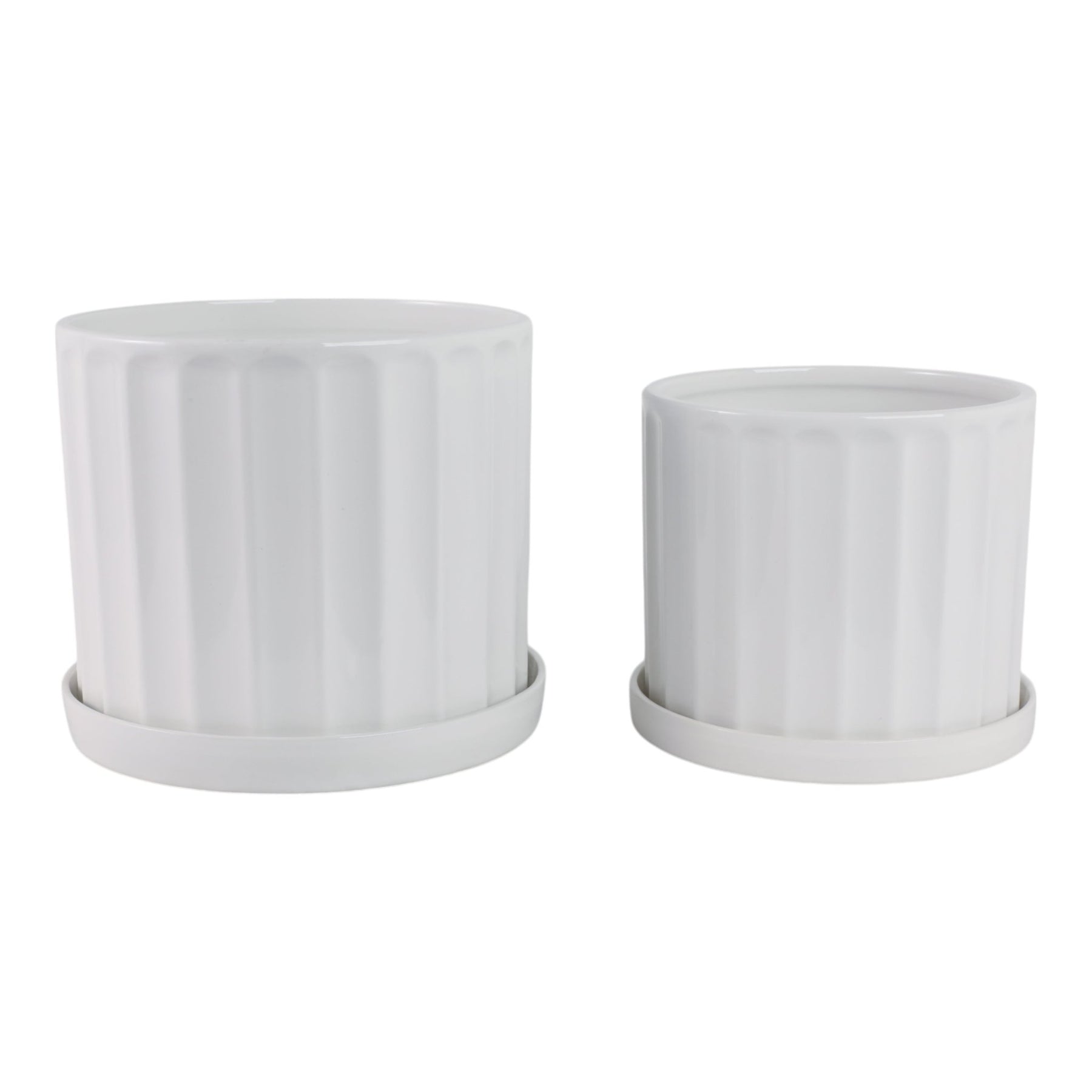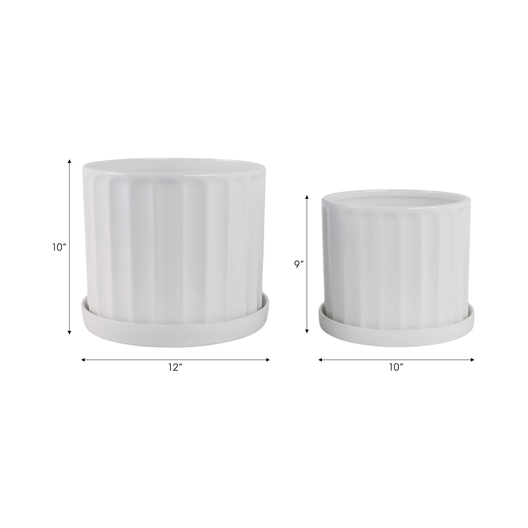 S/2 10/12" Ribbed Planter, White - Al Rugaib Furniture