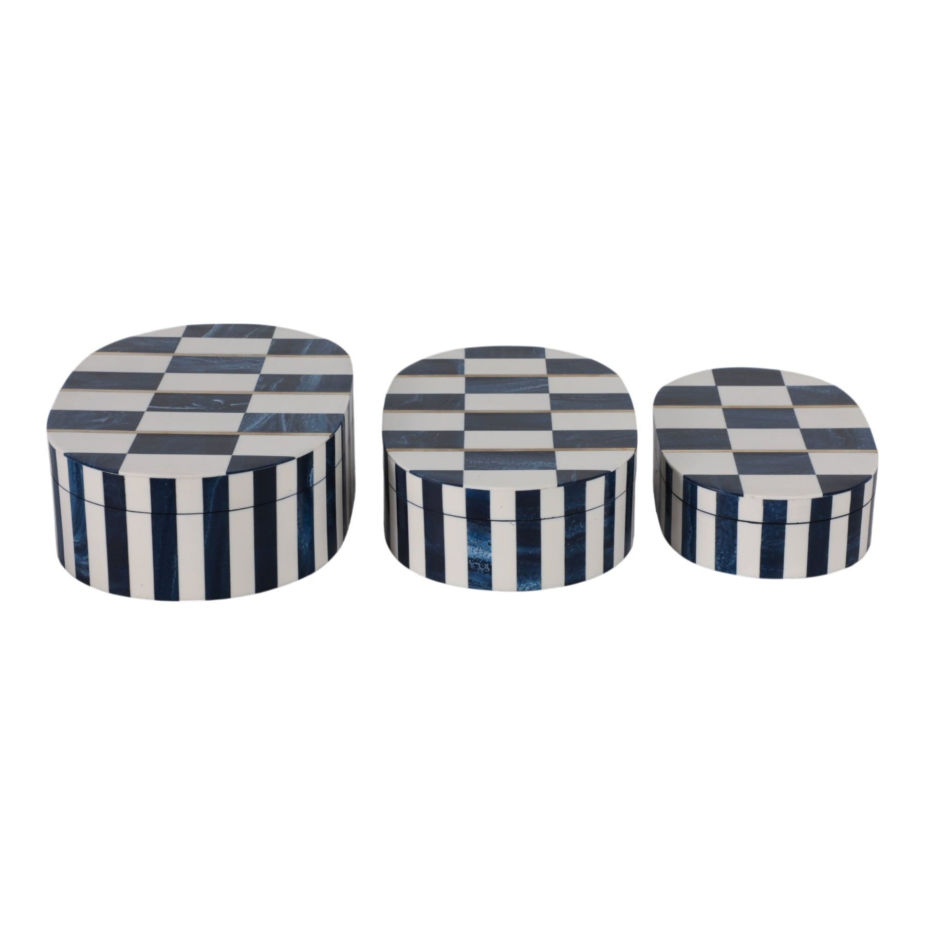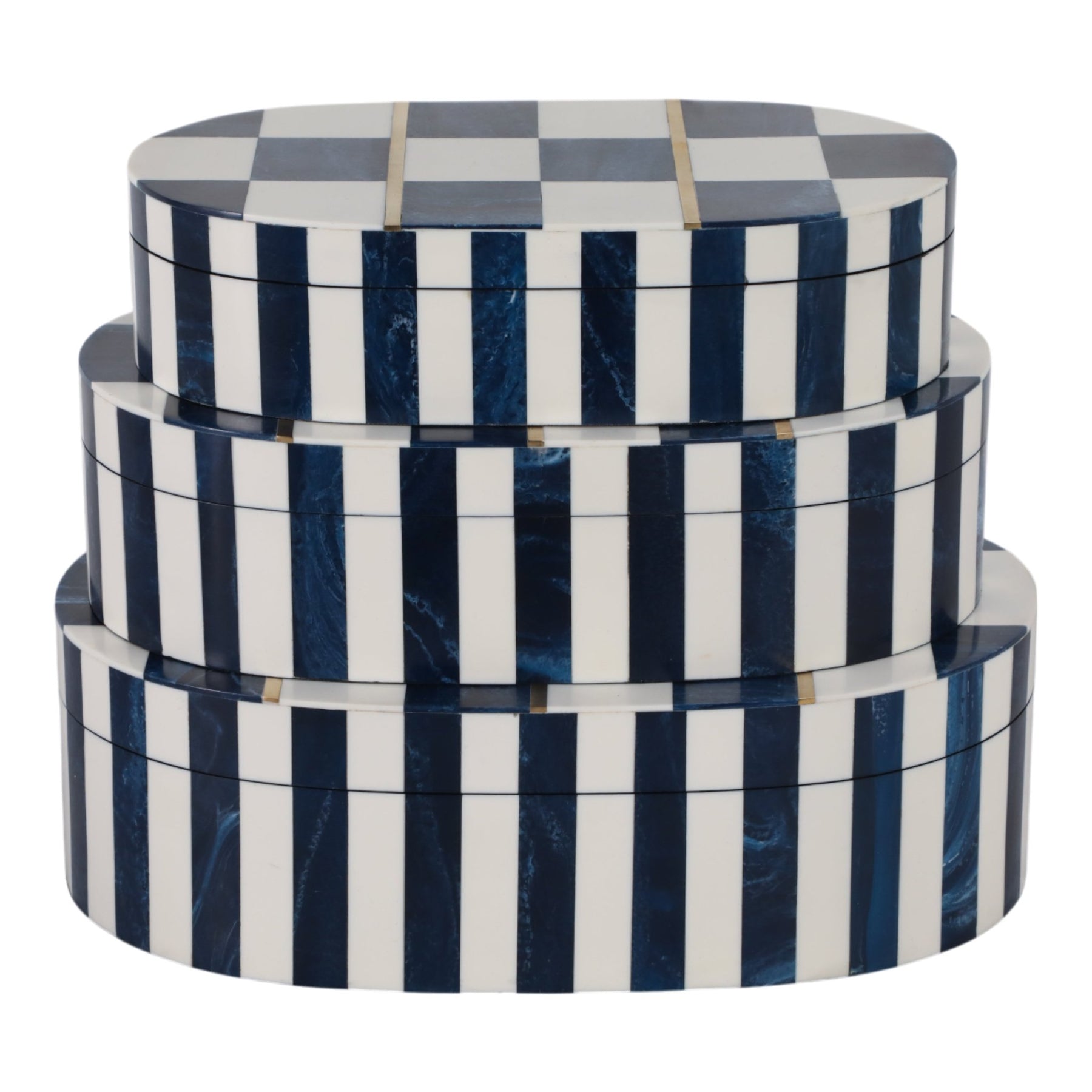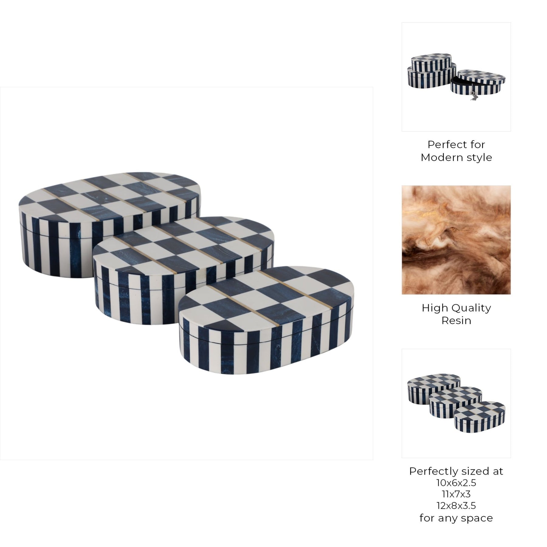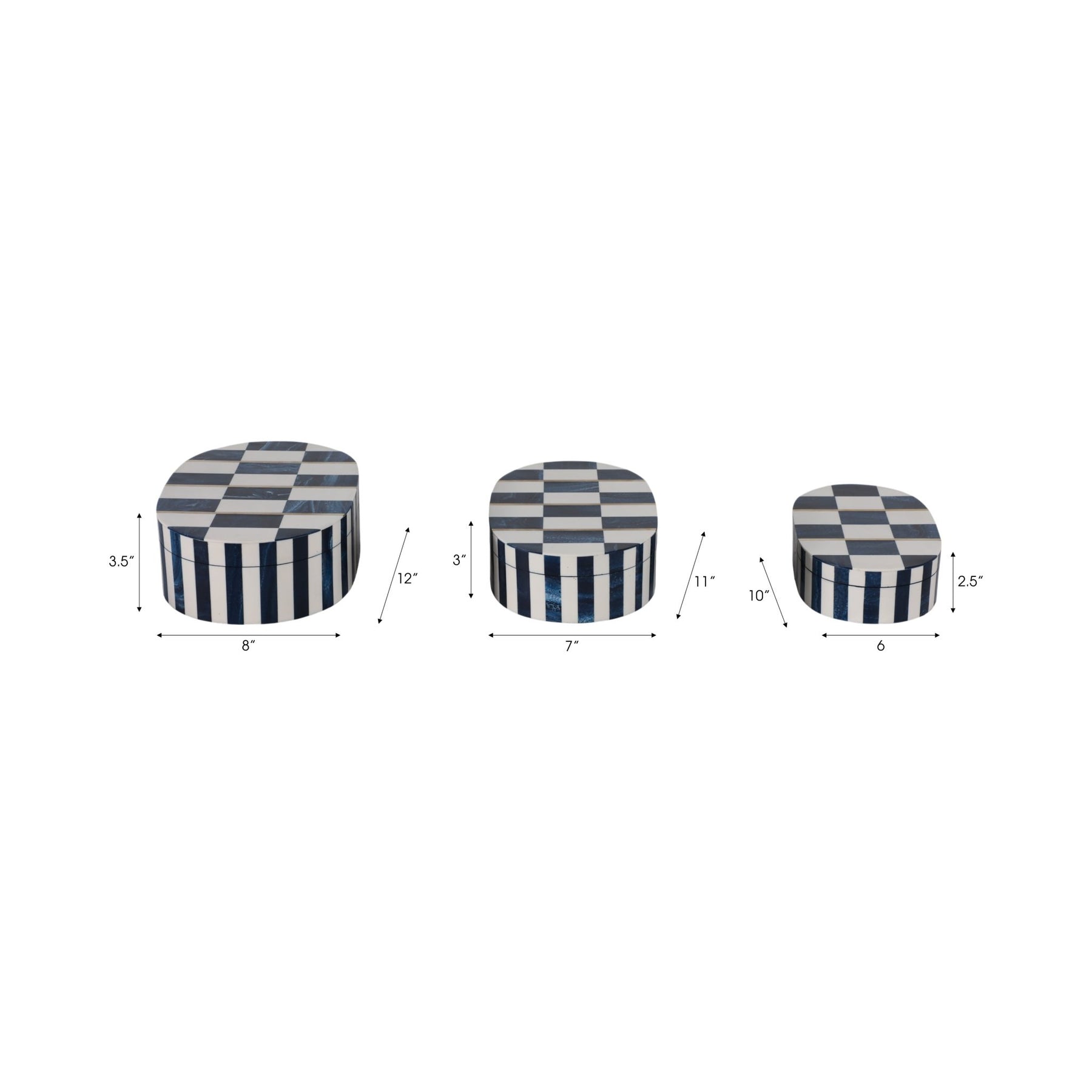 S/3 10/11/12" Oval Checkered Boxes, White/blue