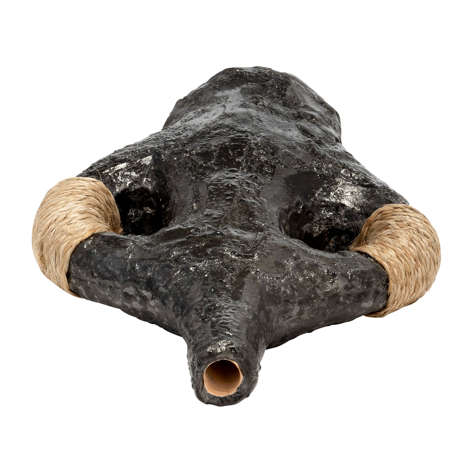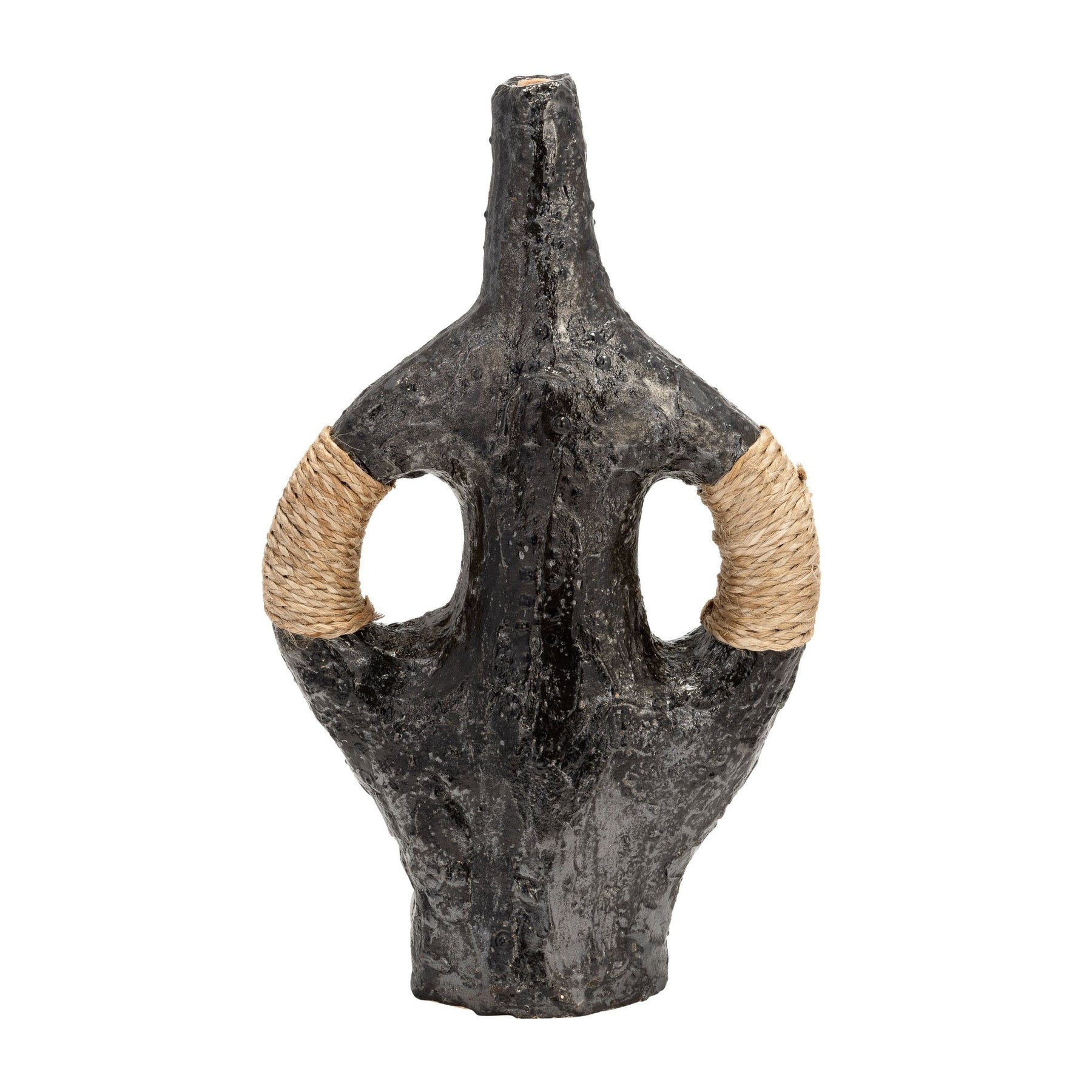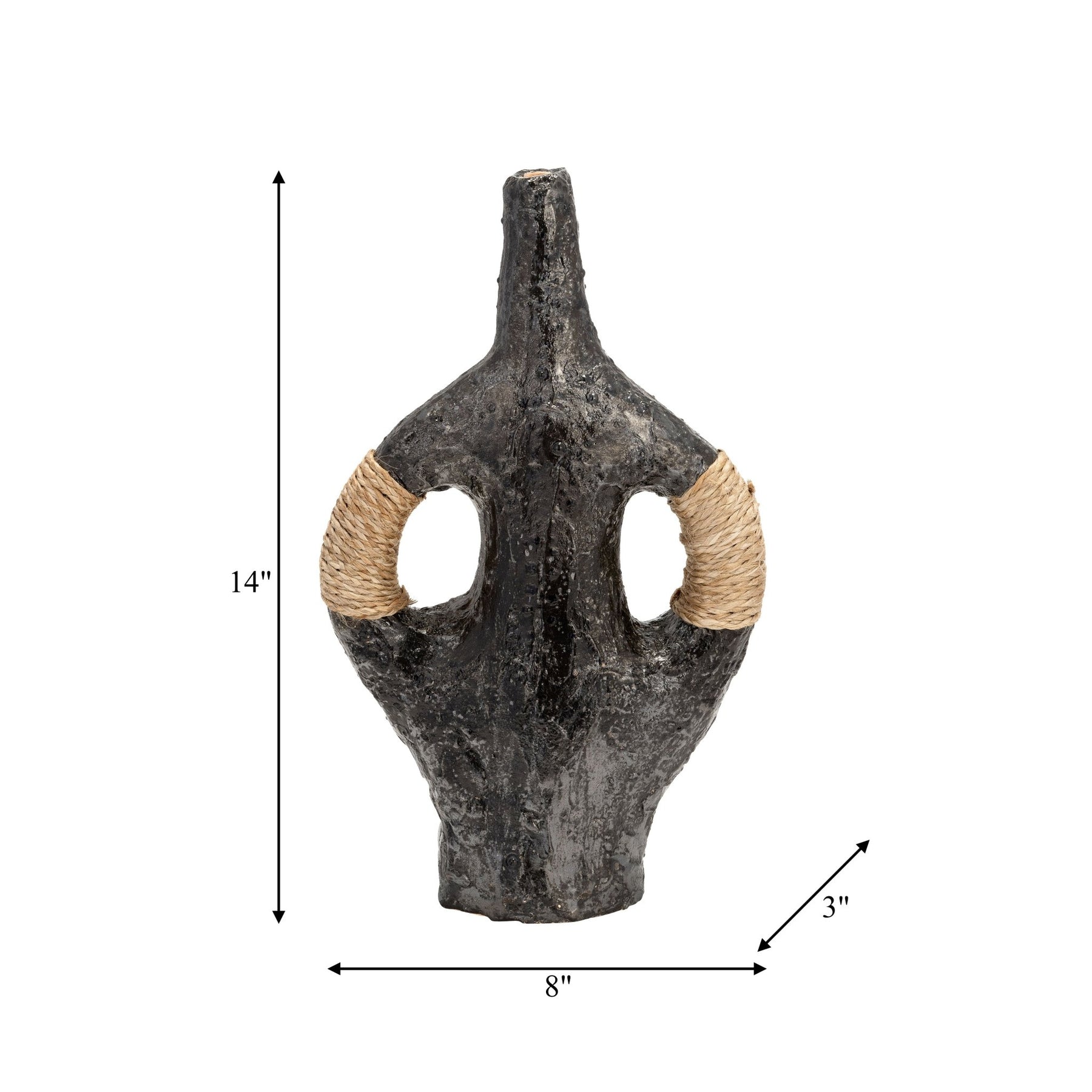TERRACOTTA 14"H, DOUBLE HANDLE W/TWINE VASE, BLK