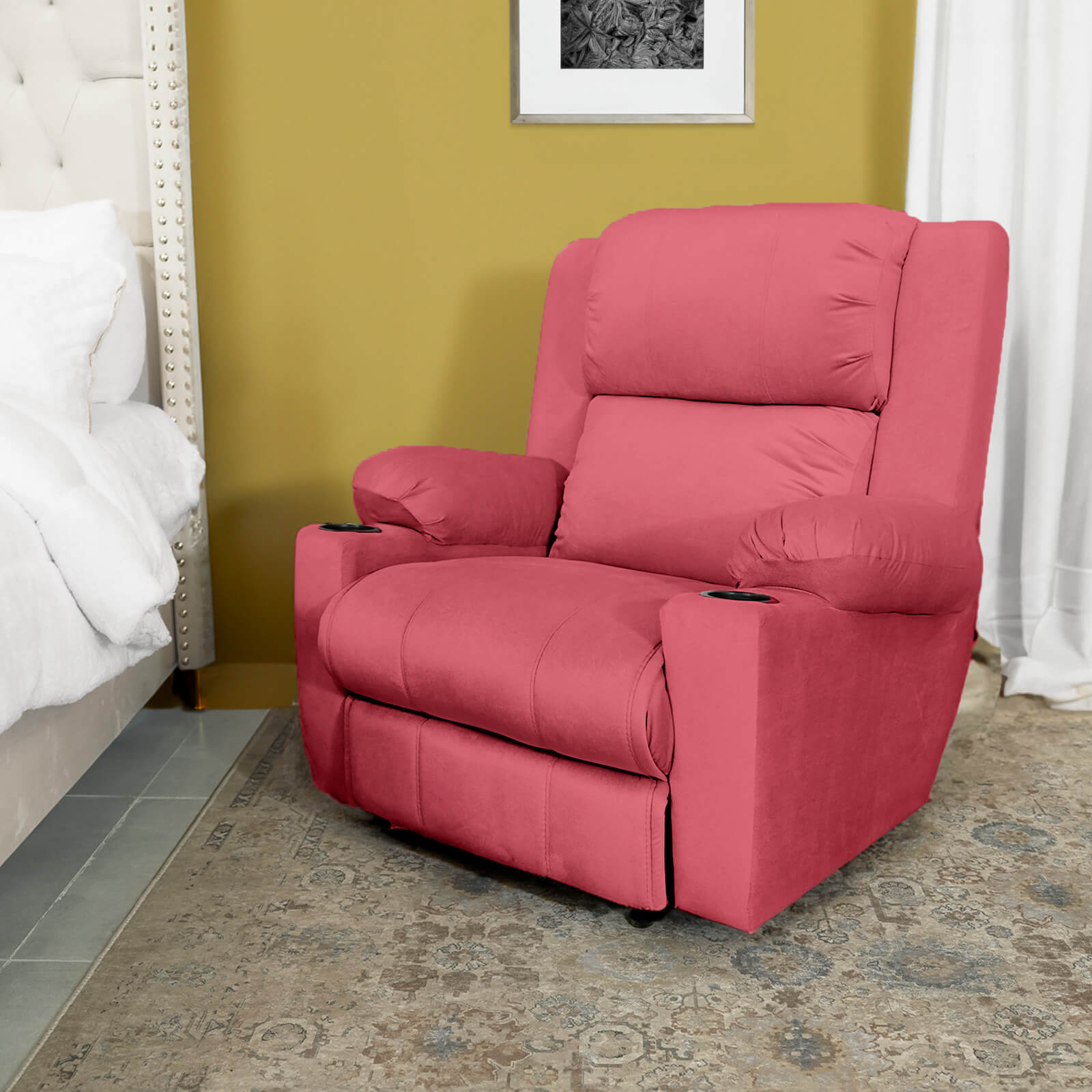 Velvet Classic Cinematic Recliner Chair with Cups Holder - Dark Pink - Lazy Troy