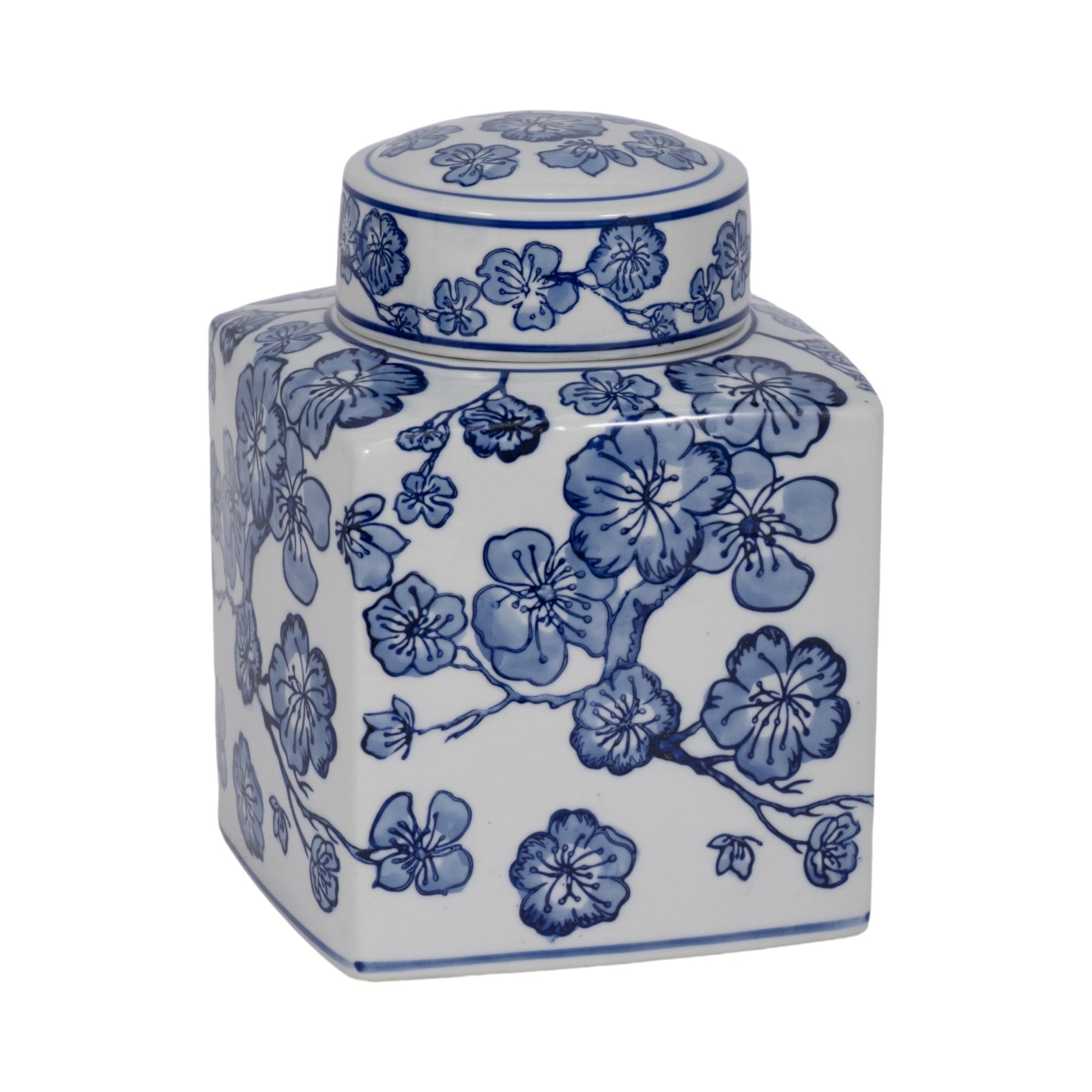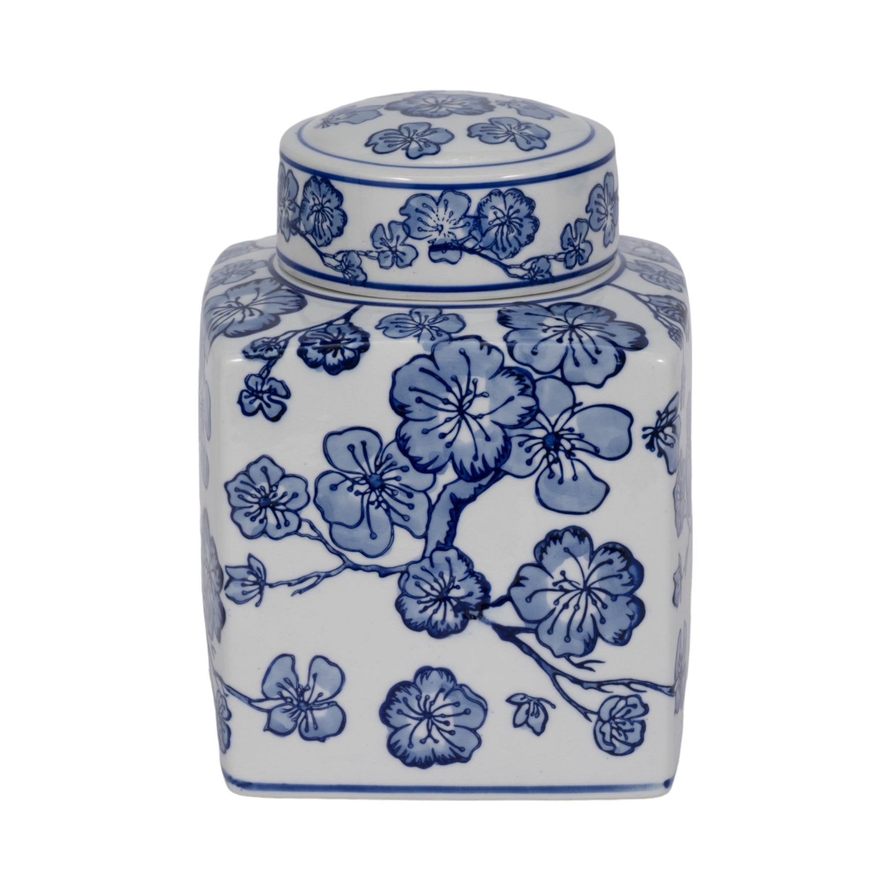 8" Cherry Blossom Chinoiserie Jar, Blue/white - Al Rugaib Furniture