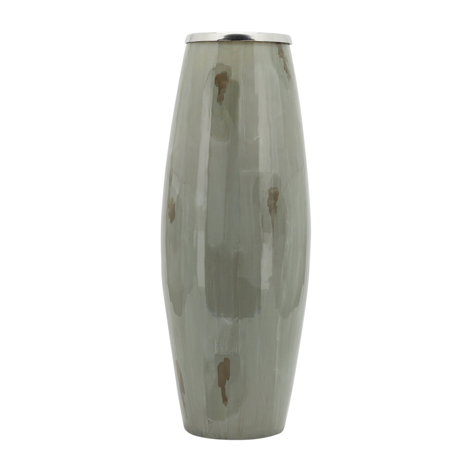 GLASS, 24"H VASE W/ METAL RING, TAUPE