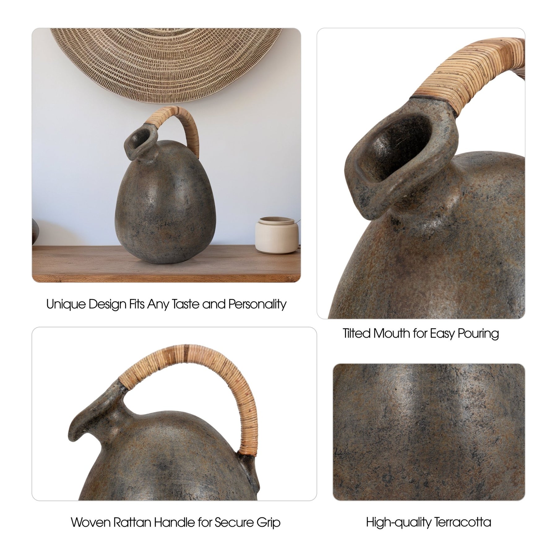 Terracotta, 16" Rustic Jug W/ Woven Handle, Multi - Al Rugaib Furniture