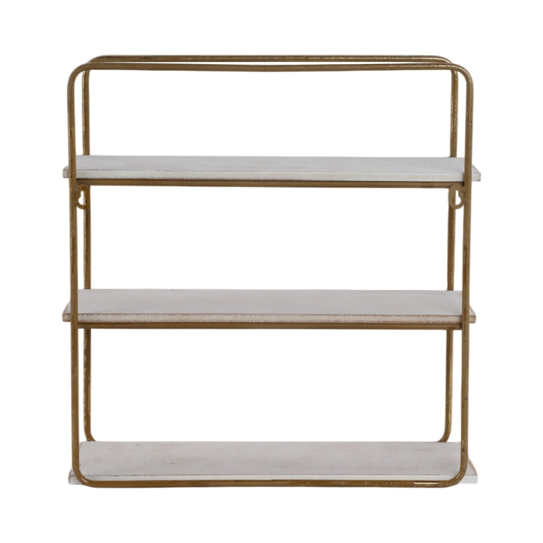 METAL / WOOD 3 TIER WALL SHELF, GOLD