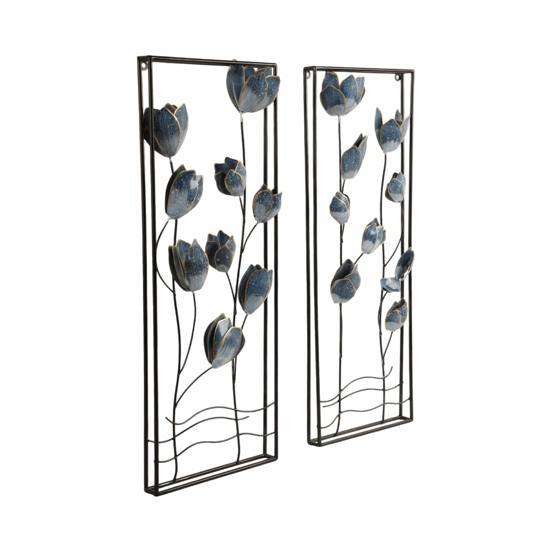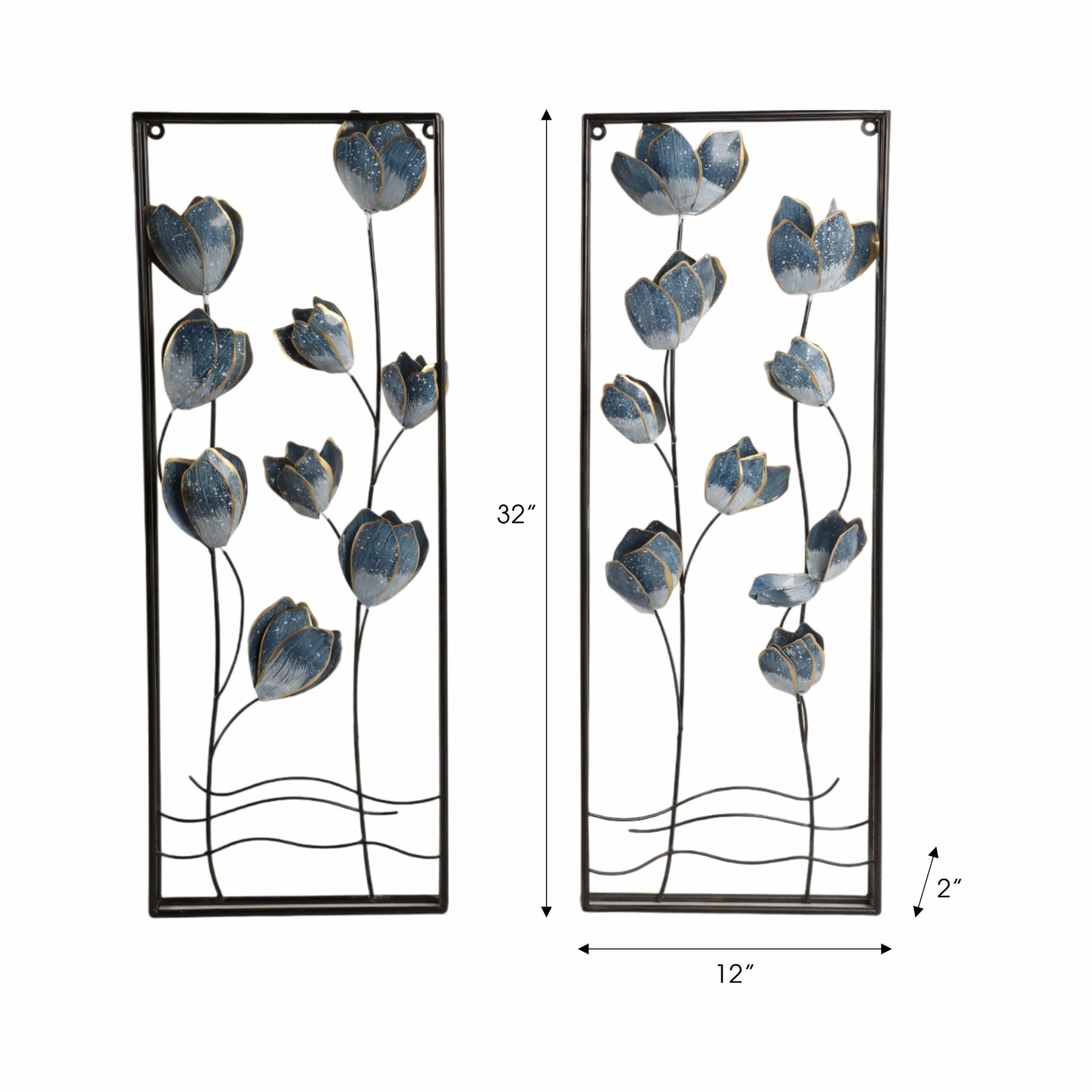 S/2 32" Blooming Flowers Metal Wall Panels, Blue/b - Al Rugaib Furniture