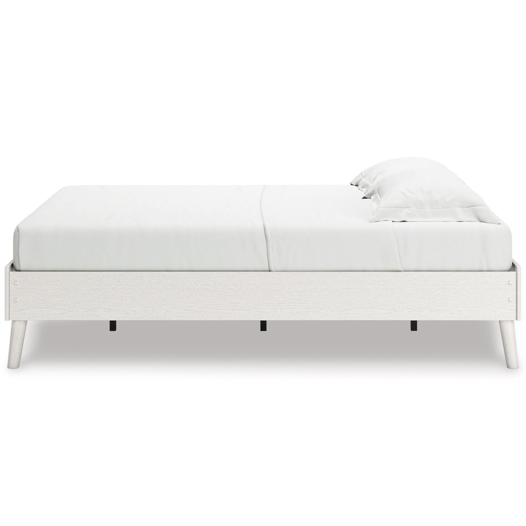 Dare to take minimalism to the max. The Aprilyn full platform bed has an air of sleek simplicity thanks to its white painted finish with subtle replicated wood grain. Magnificently mod splay legs are a compelling complement to the streamlined design. There's no doubt about it: This contemporary piece is sure to become a classic.
