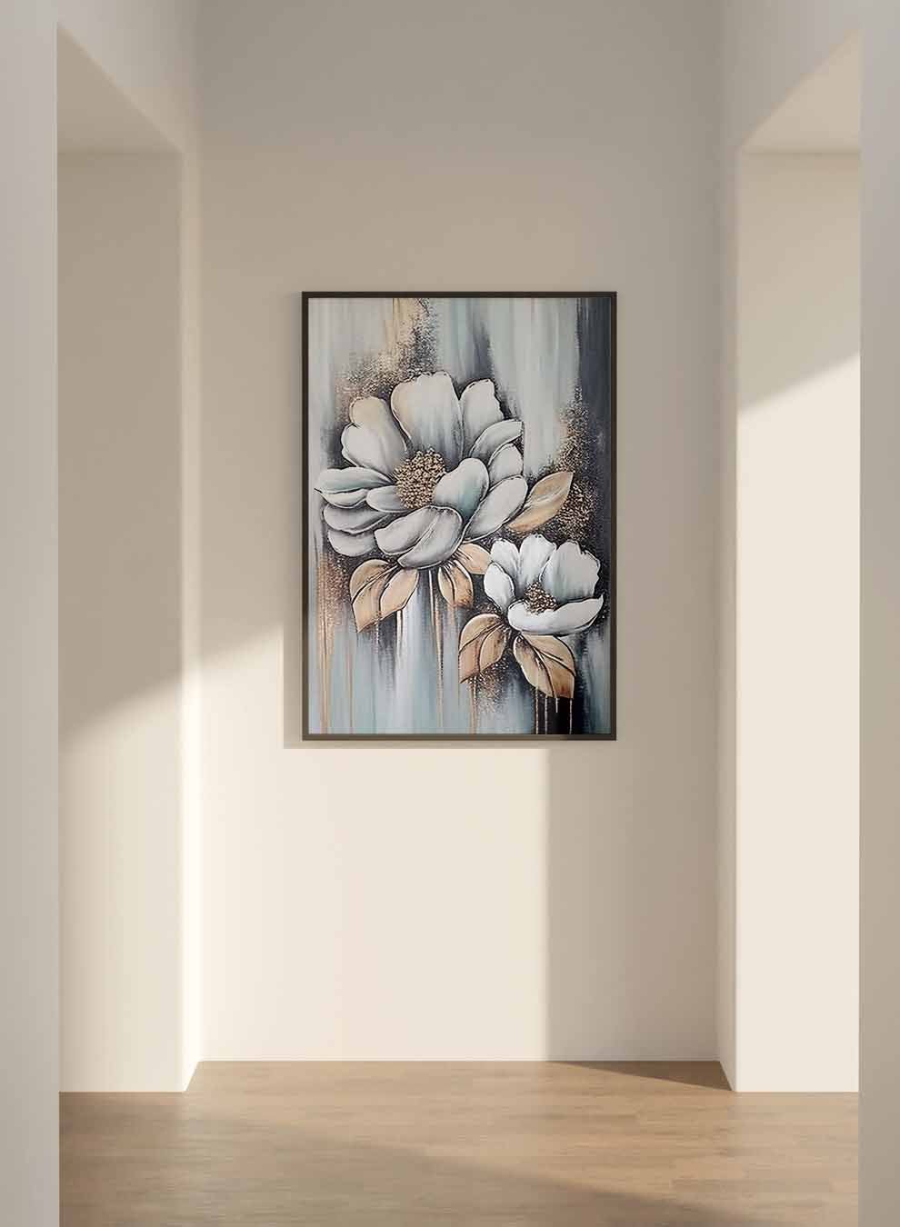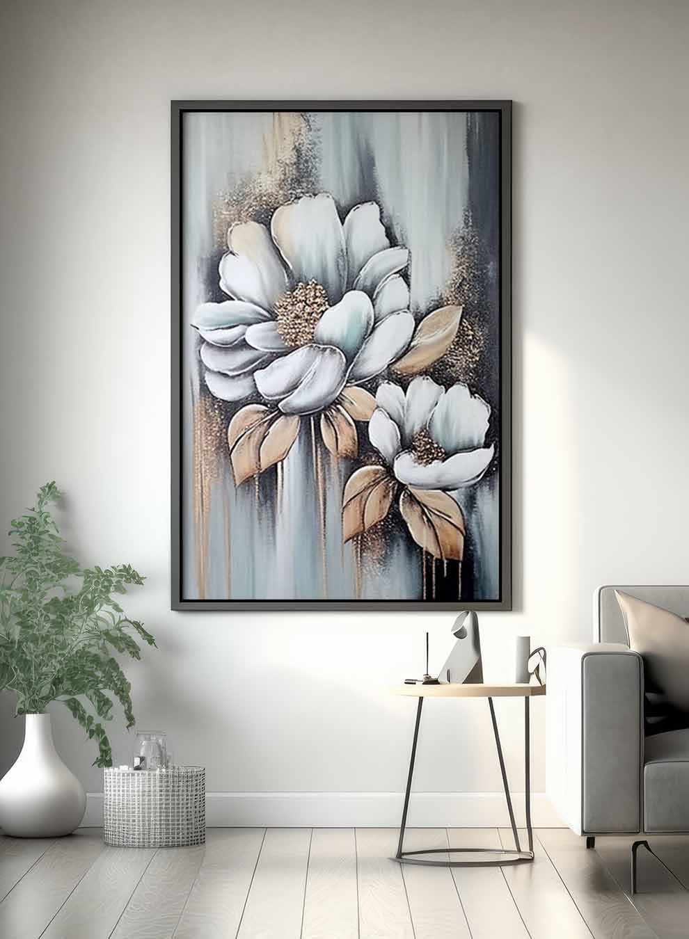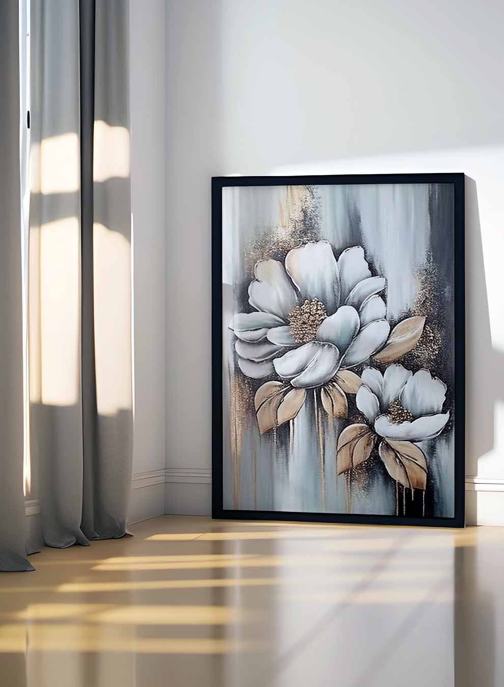 Canvas Wall Art Stretched Over Wooden Frame with Black Floating Frame