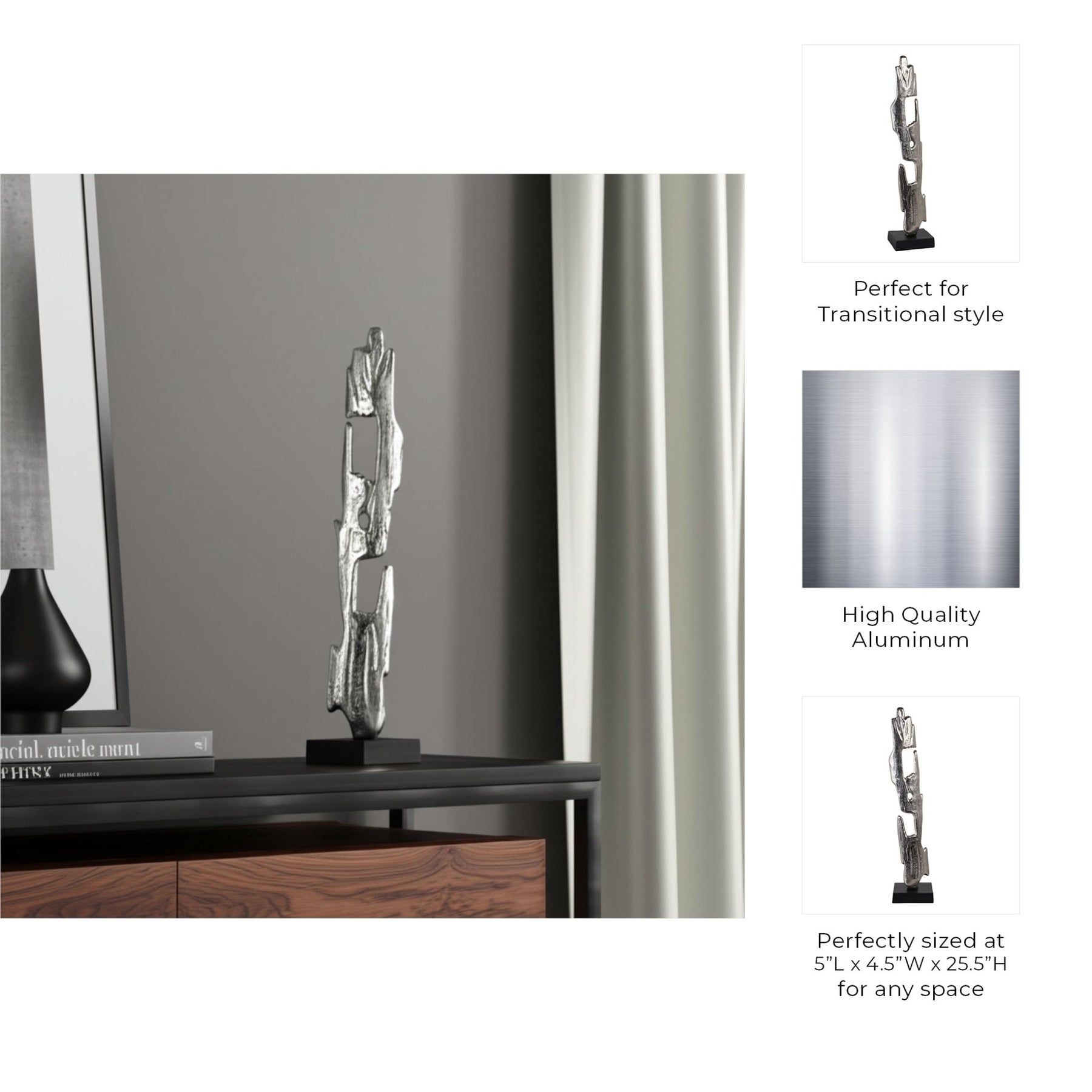 26" Bedford Small Silver Wood Post Statuary