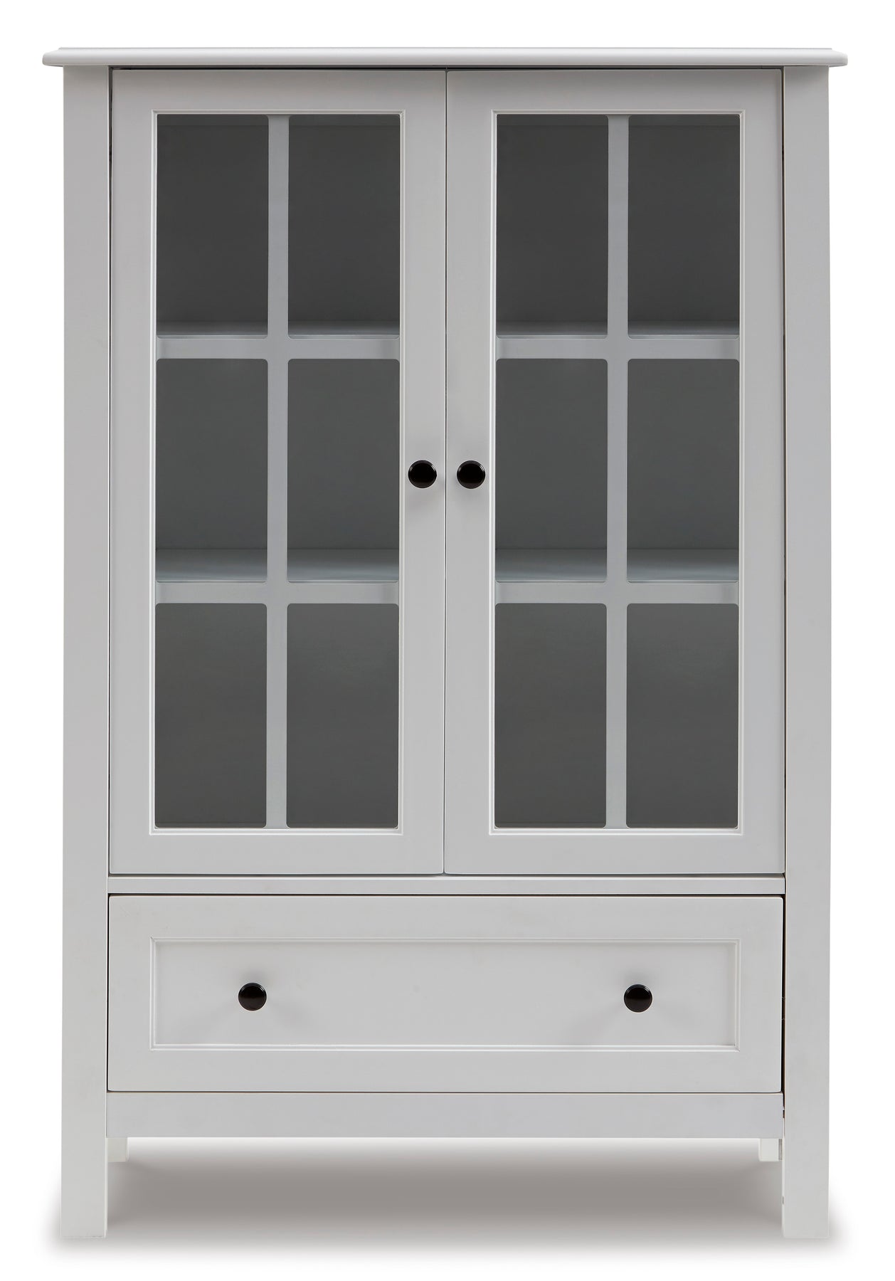 A master of effortless flair, the Miranda accent cabinet allures with farmhouse styling. The black metal pulls delight fans of rustic-chic style. Glass panel upper doors add a sophisticated touch, transforming this piece into something well beyond ordinary.