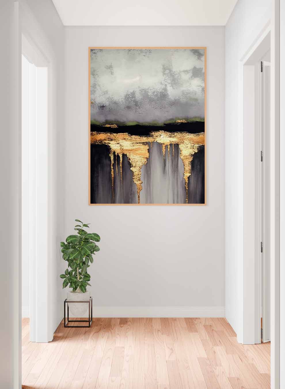 Canvas Wall Art Stretched Over Wooden Frame with Gold Floating Frame