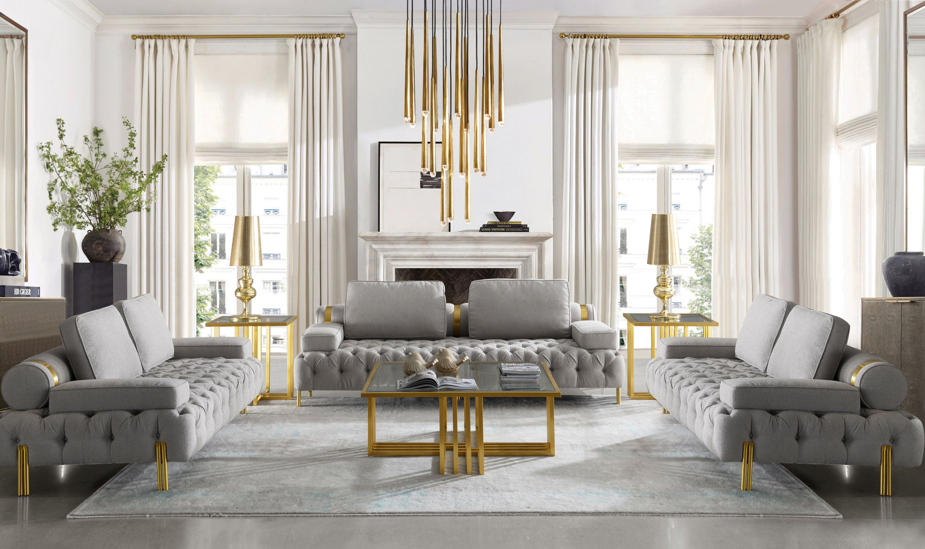 Stunning Tufting Grey 3 Seater Sofa by Roots Furniture made to impress and provide comfort. A deep seat with durable legs, firm and comfortable cushions.