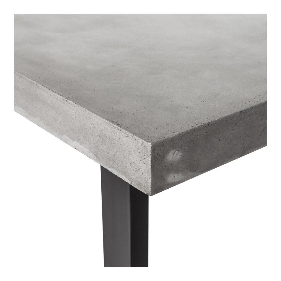 Perfect for indoors or out, the Jedrik is a cool cement and fiber table with black steel legs.