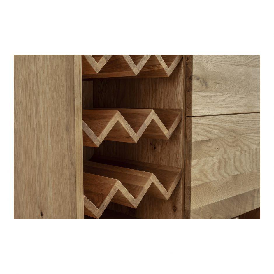 The Nevada Bar Cabinet is the ultimate bar storage for your dining room. Complete with shelves, a wine rack and two cabinets, you'll have plenty of room to store your wine bottles, wine glasses, and more. Long-lasting oak and a metal base make this a solid piece for your home. وحدة تخزين Item Material: Solid Oak, Oak Veneer, Iron Base, MDF frame Item Color: Brown Item Height: 148.59 Item Width: 99.06 Item Depth: 40.64