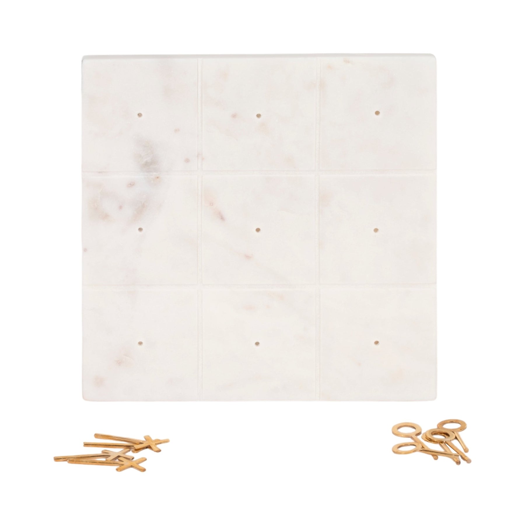 9" Marble Tic-tac-toe With Gold X & O, White/gold