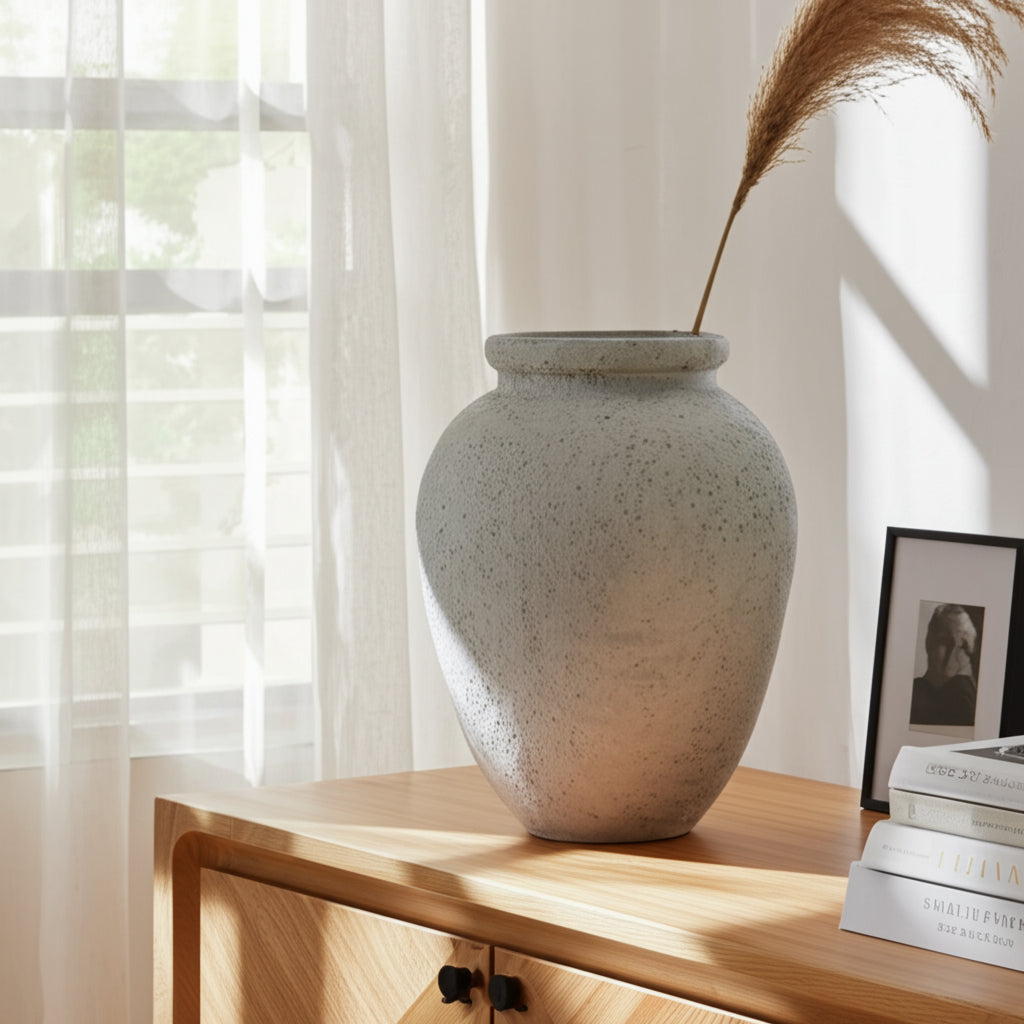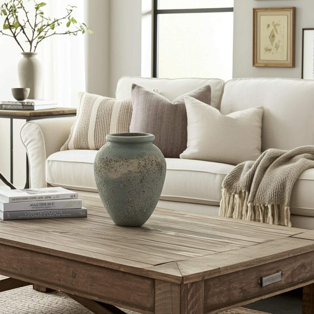 مزهرية طينية بيضاء / عاجية / خضراء / سوداء بحجم 12x9 بوصة 12x9 Terracotta Vase, White/Ivory/green/Black