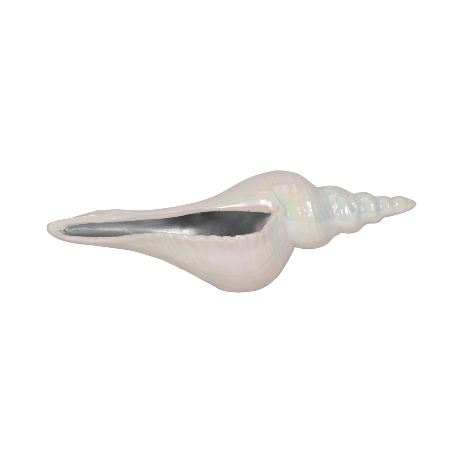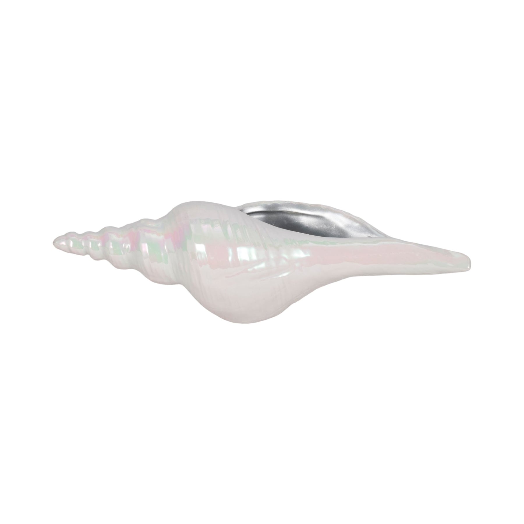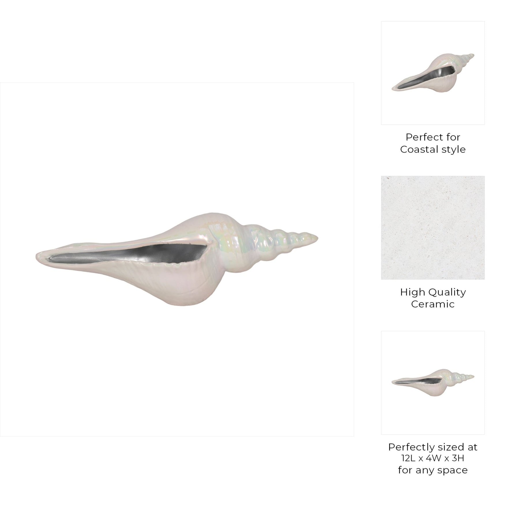 12" Long Iridescent Seashell With Silver, Ivory/si - Al Rugaib Furniture