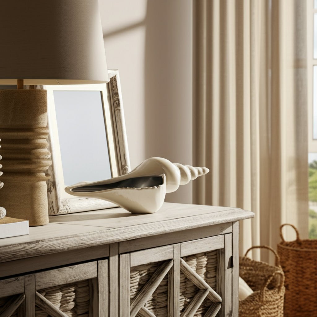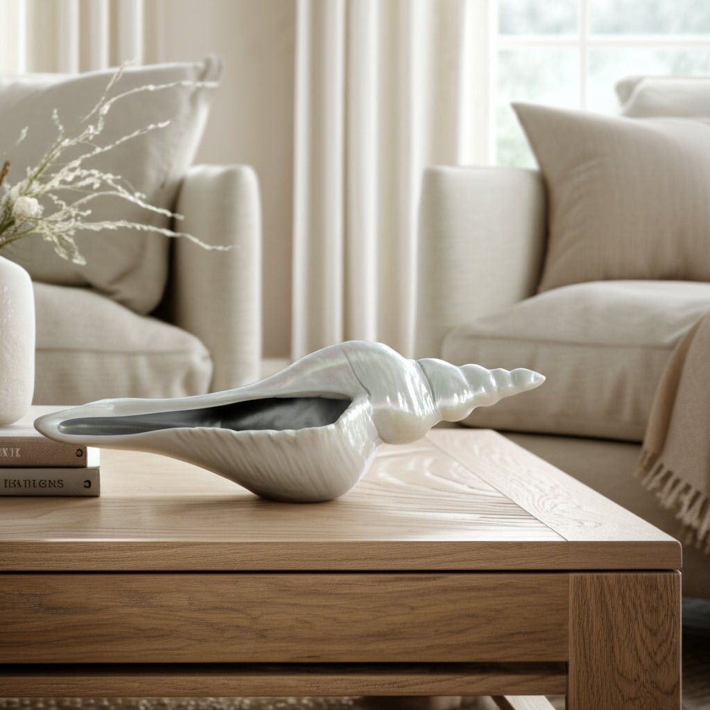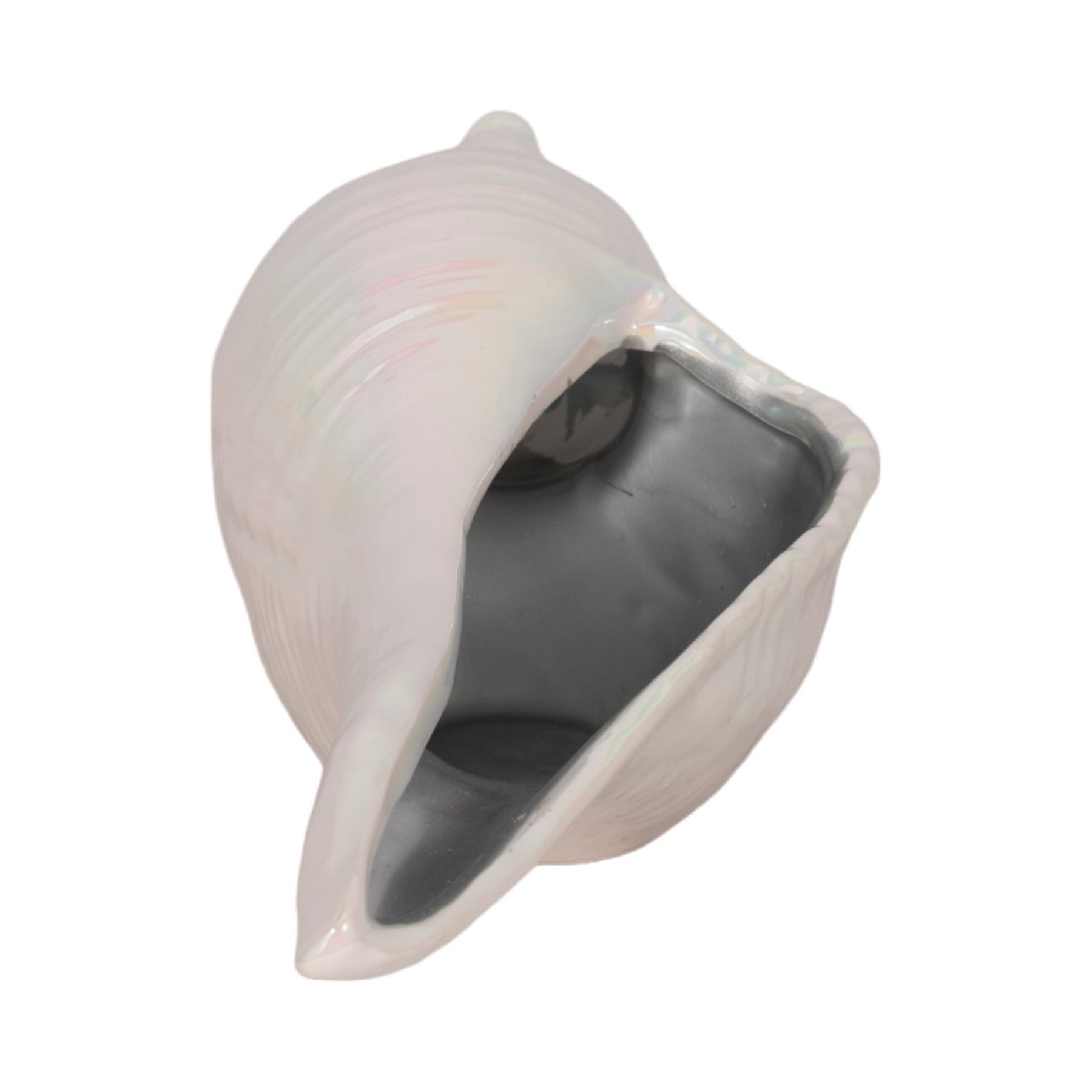 12" Long Iridescent Seashell With Silver, Ivory/si - Al Rugaib Furniture