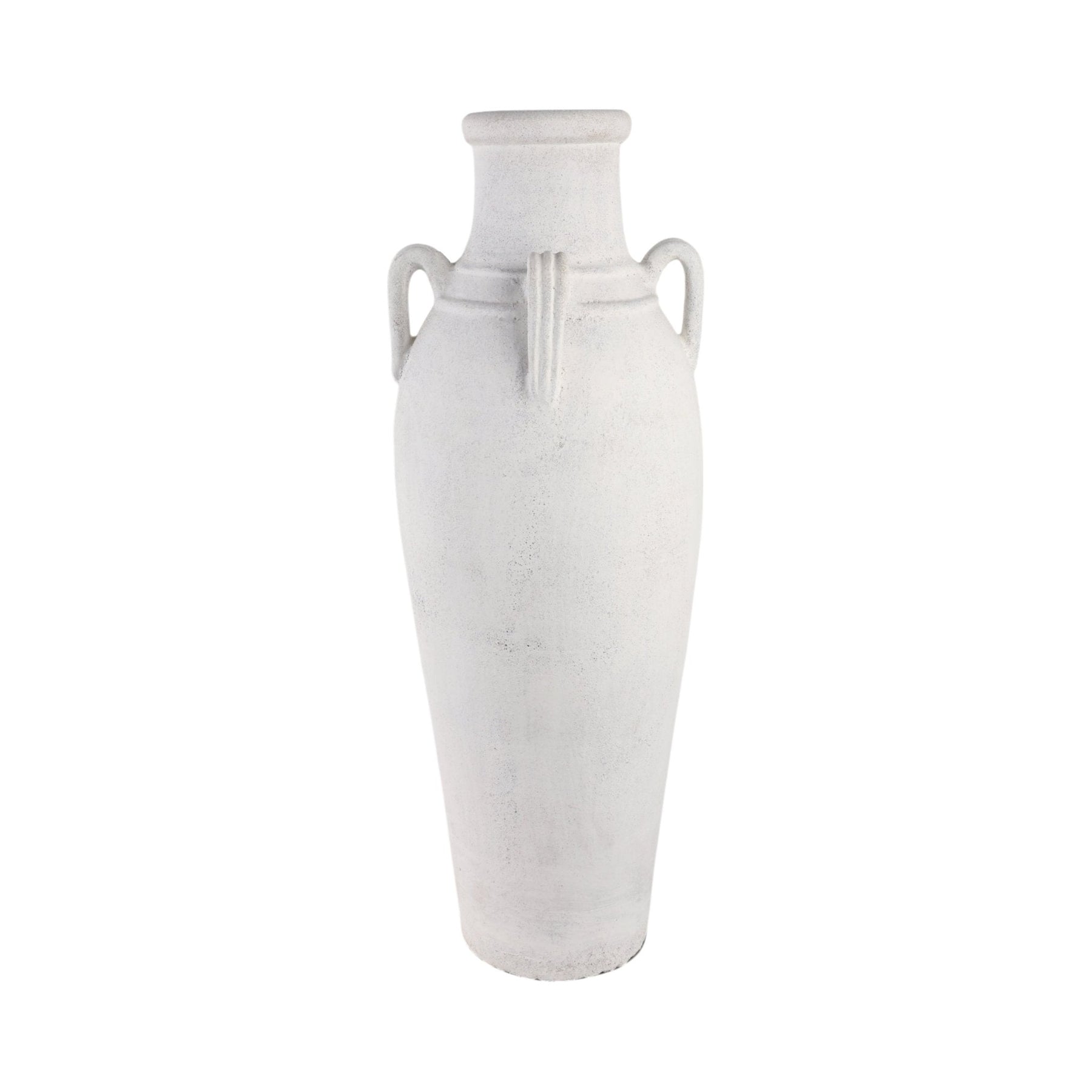 39" Terracotta Floor Vase W/handles, Ivory - Al Rugaib Furniture