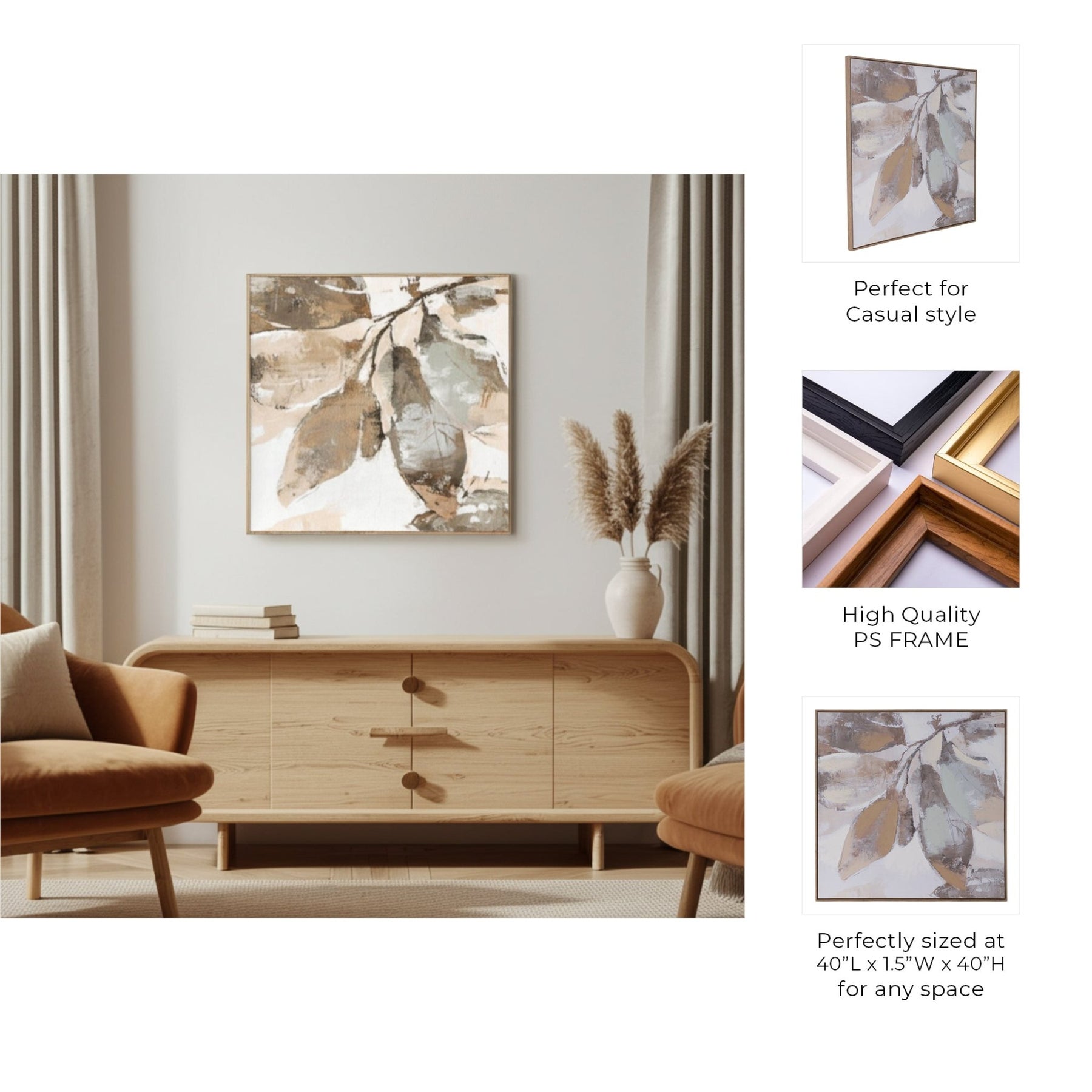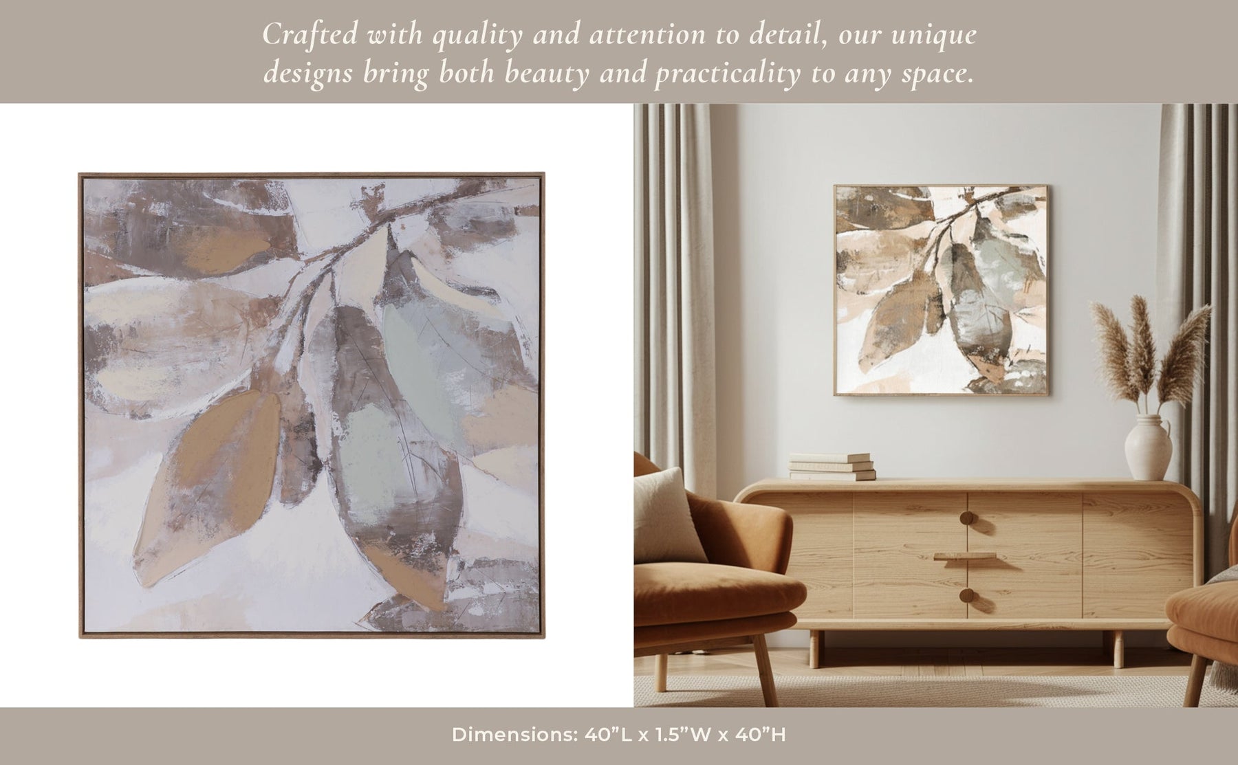 40x40" Handpainted Fall Leaves, Brown - Al Rugaib Furniture