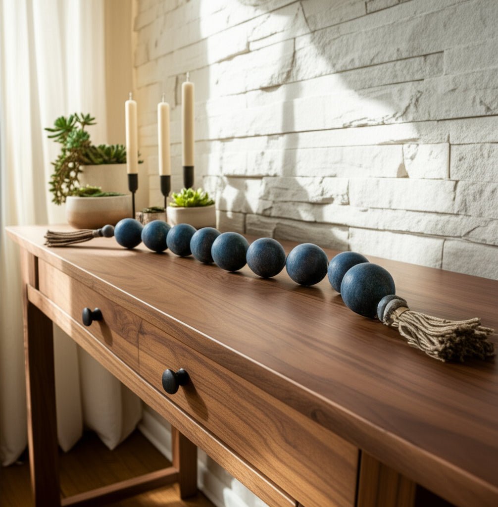 53"cardiff Blue Eco - mix Garland W/leather Tassels - Al Rugaib Furniture