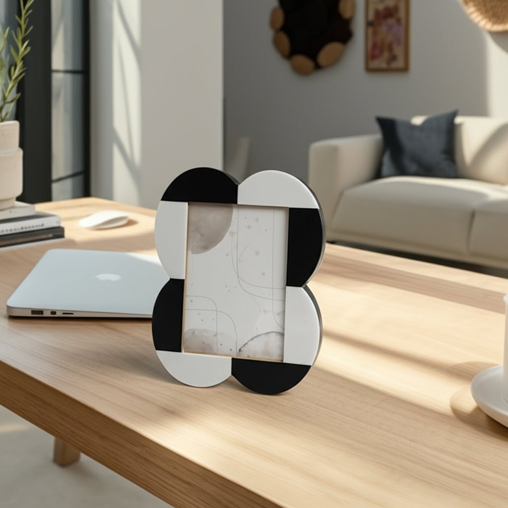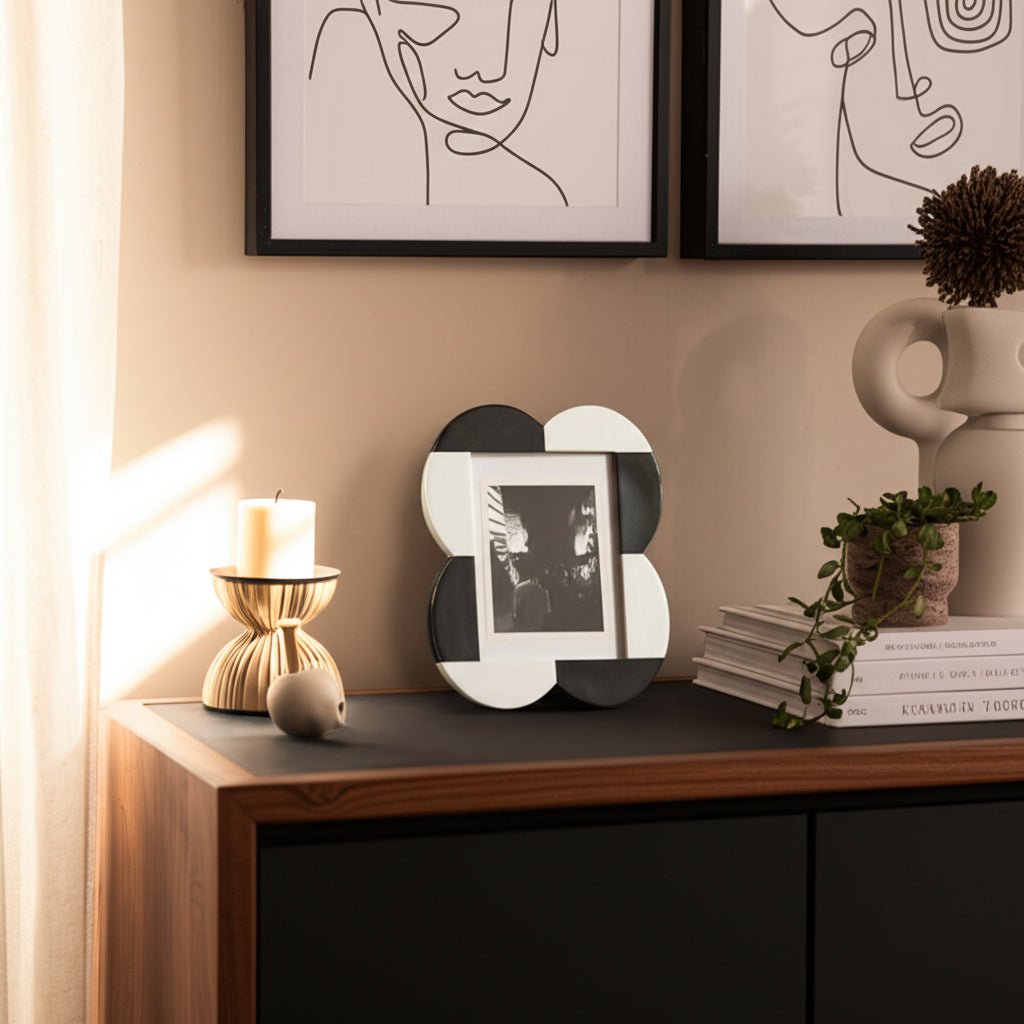 5x7 Large Scallop Photo Frame, Black/white - Al Rugaib Furniture