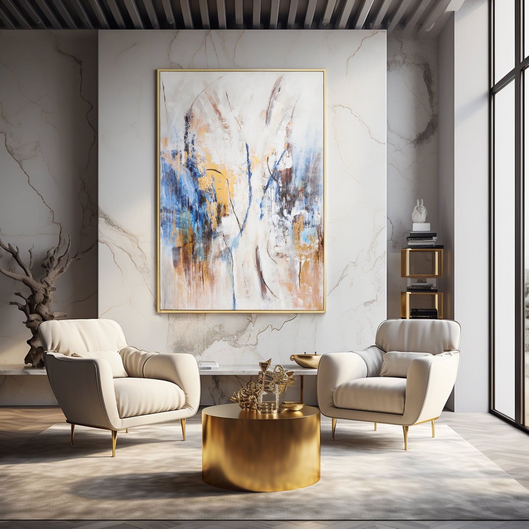 74X50 FRAMED HAND PAINTED ABSTRACT CANVAS, MULTI - Al Rugaib Furniture