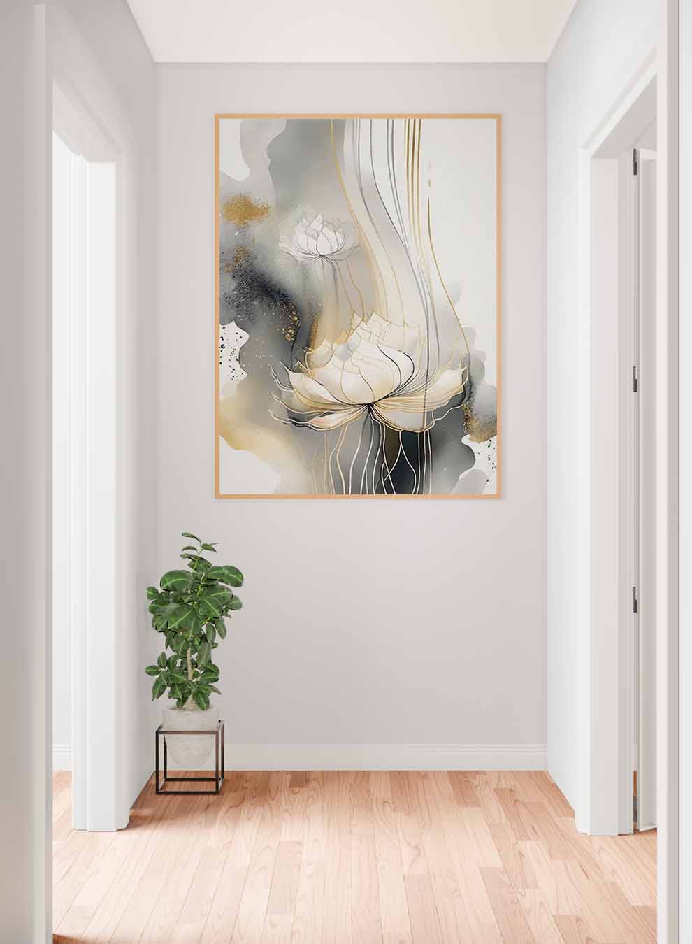 Canvas Wall Art Stretched Over Wooden Frame with Gold Floating Frame