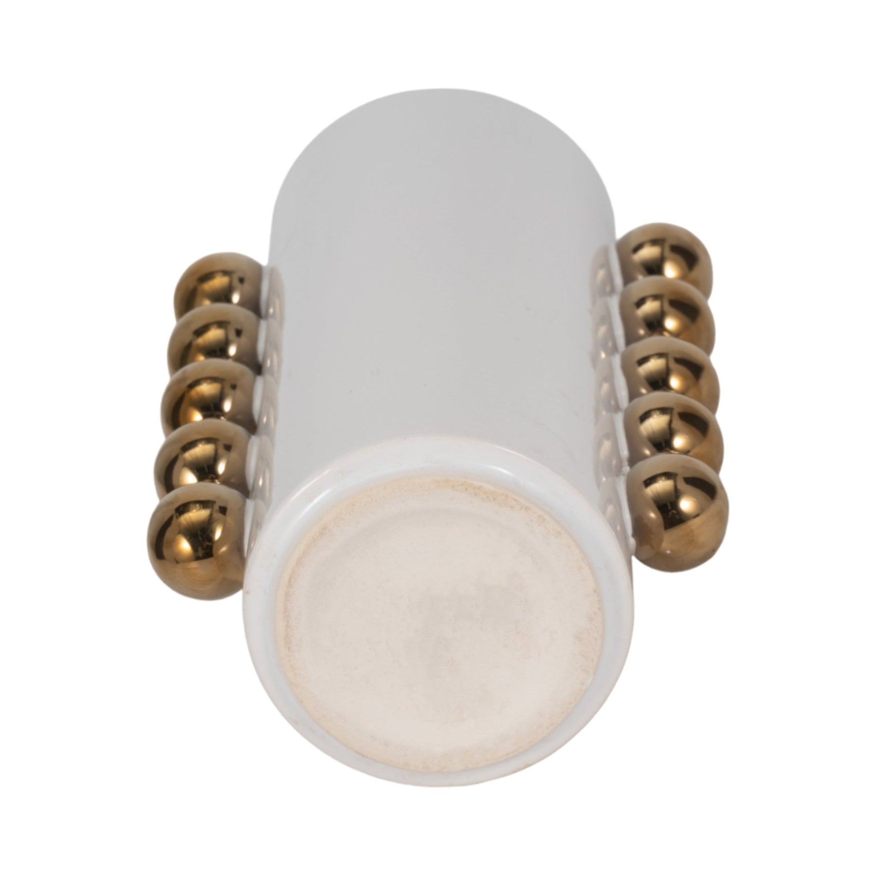 Cer, 10" Vase W/ Side Knobs, White/gold