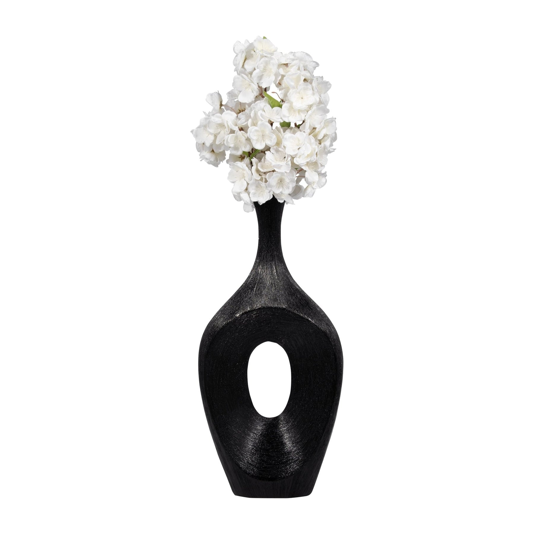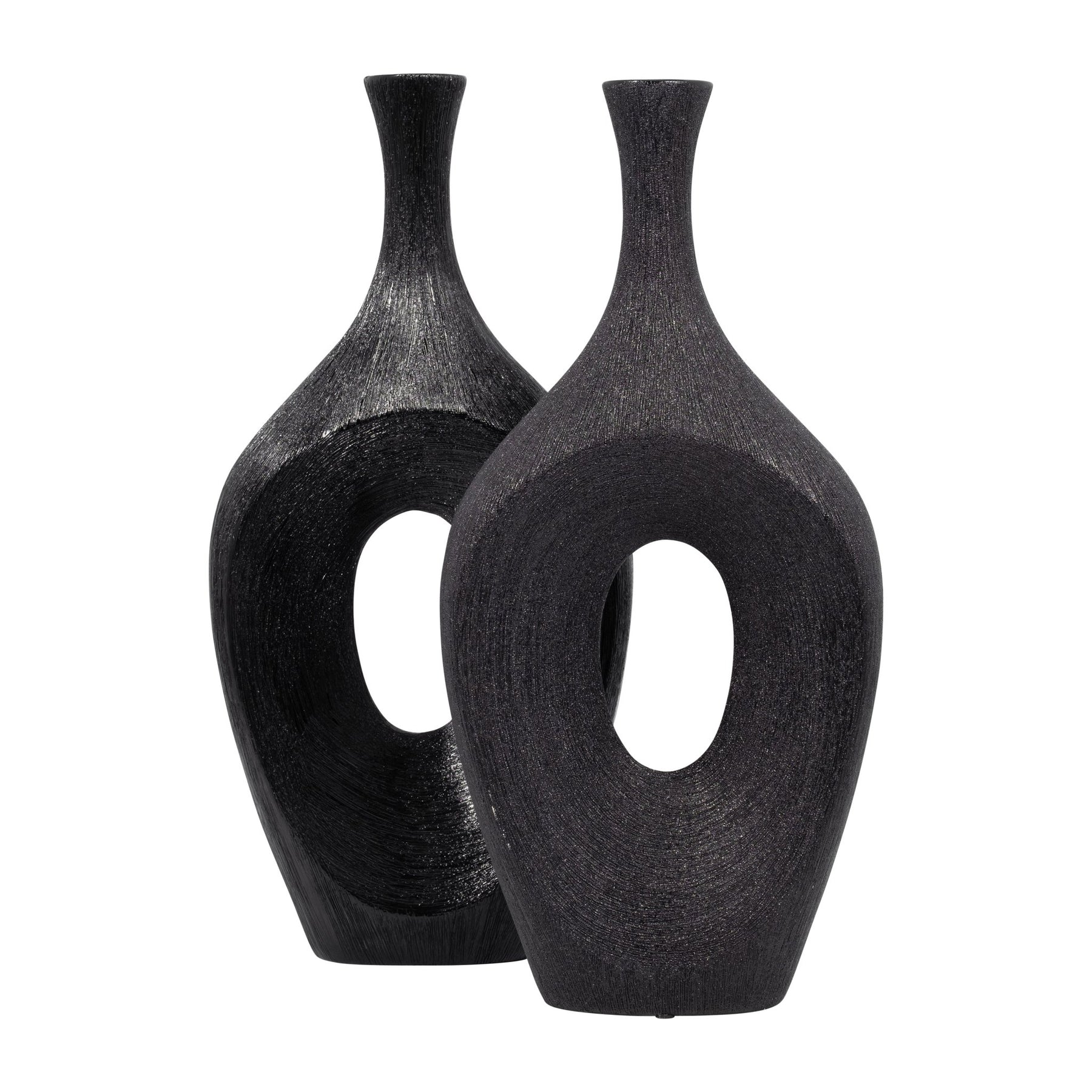 CER, 19" SCRATCHED OPEN CUT VASE, BLACK - Al Rugaib Furniture