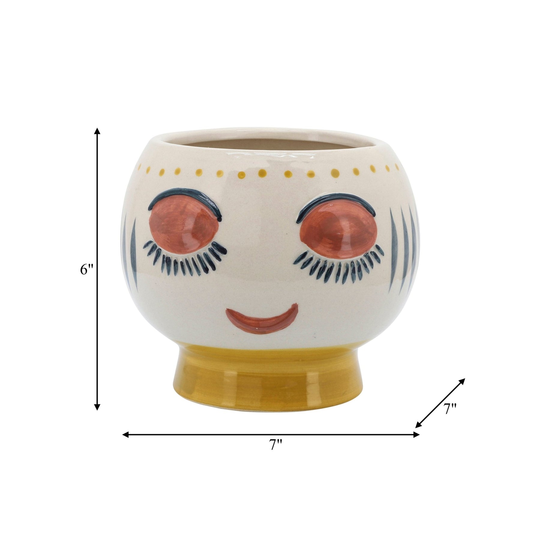 Cer, 7"D Face Planter, Multi - Al Rugaib Furniture